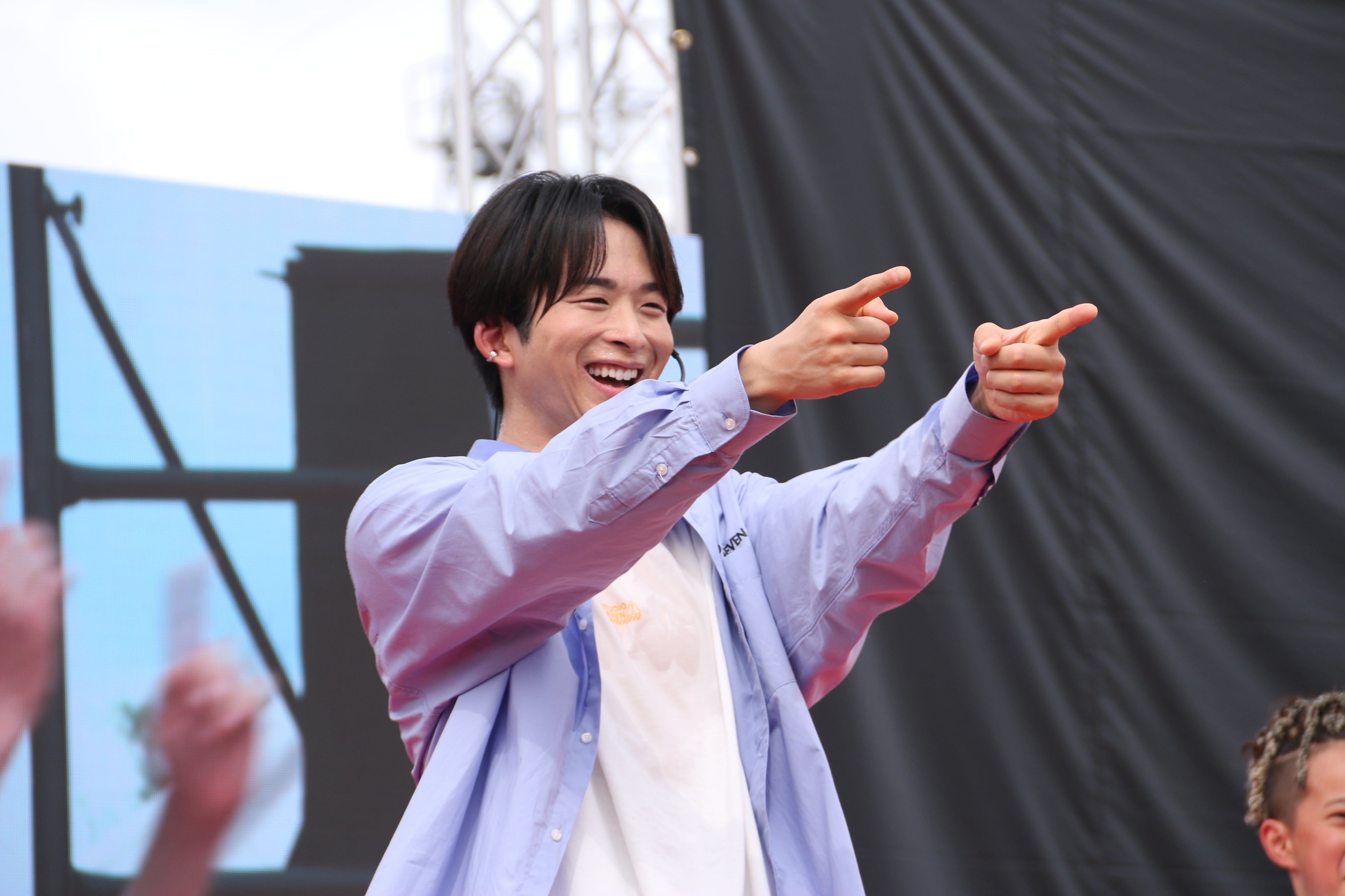 FANTASTICS 澤本夏輝は、「鯖江市は初めて来たのですが、皆さんの盛り上がりがライブ並み!最高です!!」と語りました。