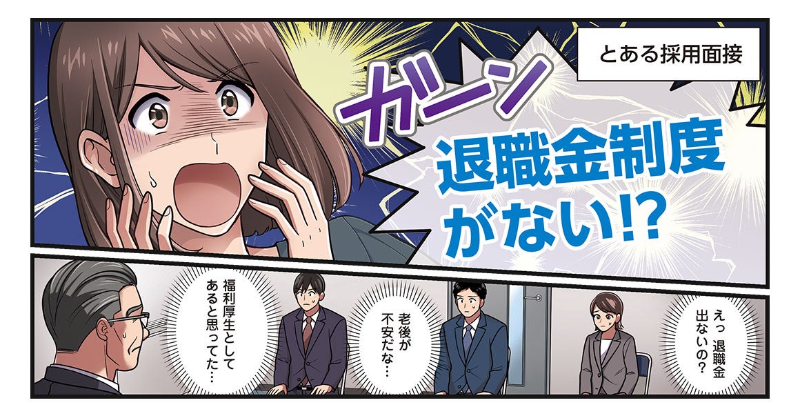 2023年10月2日(月) より、BSフジ、BSテレ東、SNS等にてTVCMを放映します。CMでは、面接に来る若者が、福利厚生として退職金制度がない不安を意識した構成となっています。