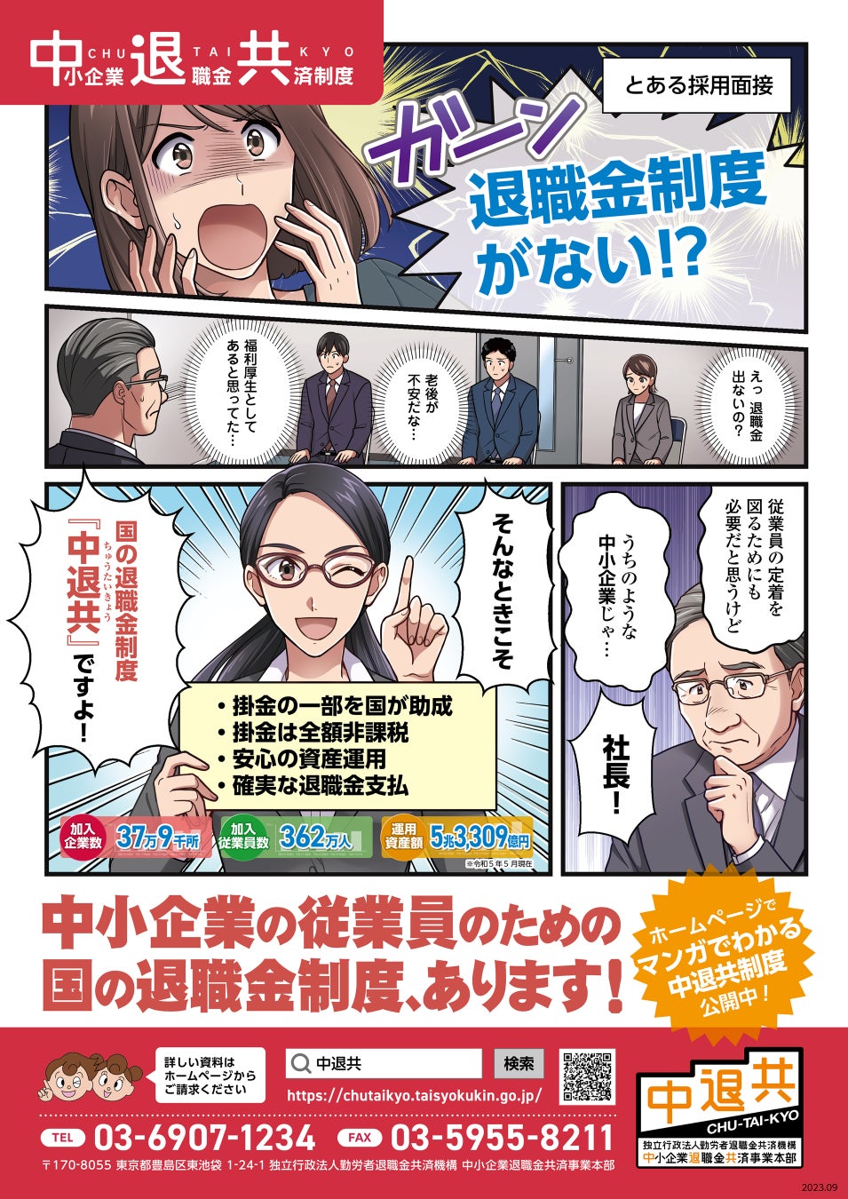 “中小企業の従業員のための国の退職金制度、あります!”をキャッチコピーとしたポスター・チラシを展開します。