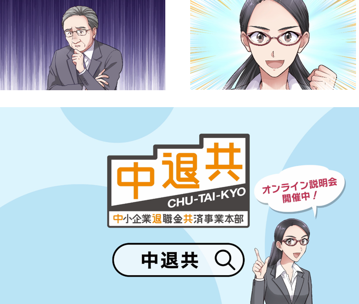 「教えて! 退田さん」は、中小企業の事業主に対して、いつも的確なアドバイスをしてくれる、頼れる税理士・退田さんを主人公としたオリジナル漫画です。本作の中では、中小企業の事業主から、「面接に来る若者たちは、福利厚生としての退職金の有無に関心があるようだ・・・」という悩みを相談され、「中退共制度」を活用した福利厚生の見直しを提案します。漫画の内容は、実際に「中退共制度」の加入を検討する際、税理士や社会保険労務士に相談する事業主の方が多いことをふまえた、リアリティのある設定となっています。事業主と税理士のやり取りをベースとしたオリジナルストーリーを通じて、自然な流れで「中退共制度」の理解を深めることが可能です。