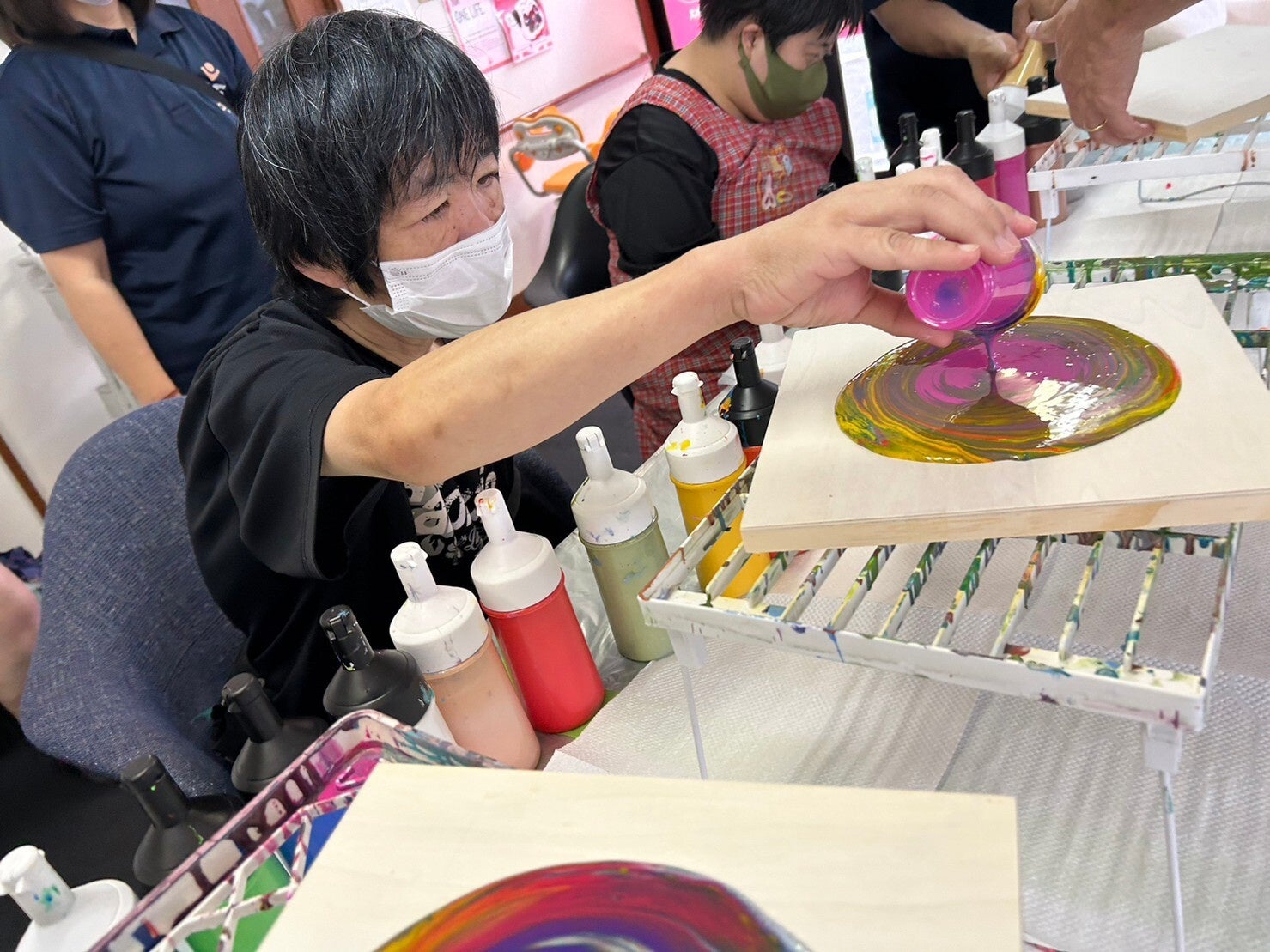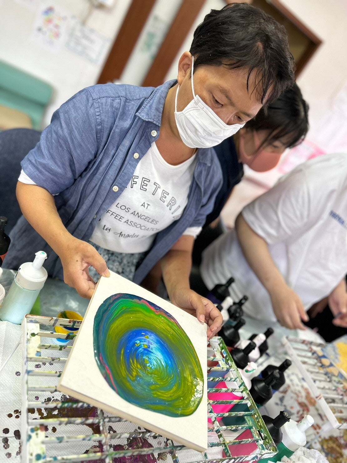 小さい子供から高齢者まで、また、障害の有無を問わず、幅広い方々にアートを楽しんでいただける技法となっております。