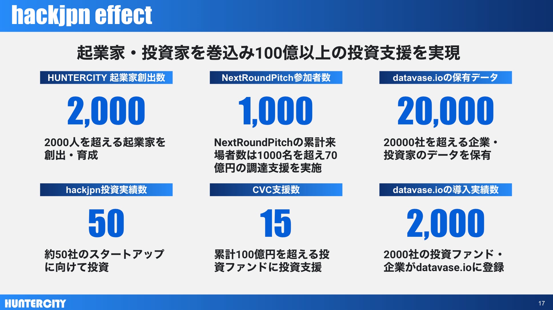 hackjpnはこれまで投資家と起業家を繋げるプラットフォームを運営し、50社を超えるスタートアップに投資を行ってきました。今後、ファンド組成を民主化することで、これまで資金調達が困難であった市場課題を解決します。また今後アジアナンバーワンのファンド組成プラットフォーマーを目指し、非連続的にファンド組成することを目標とします。5年後には100を超える運用額100億円以上のファンド組成の実現を目指し、今後もベンチャー投資、スタートアップのエコシステムに貢献してまいります。