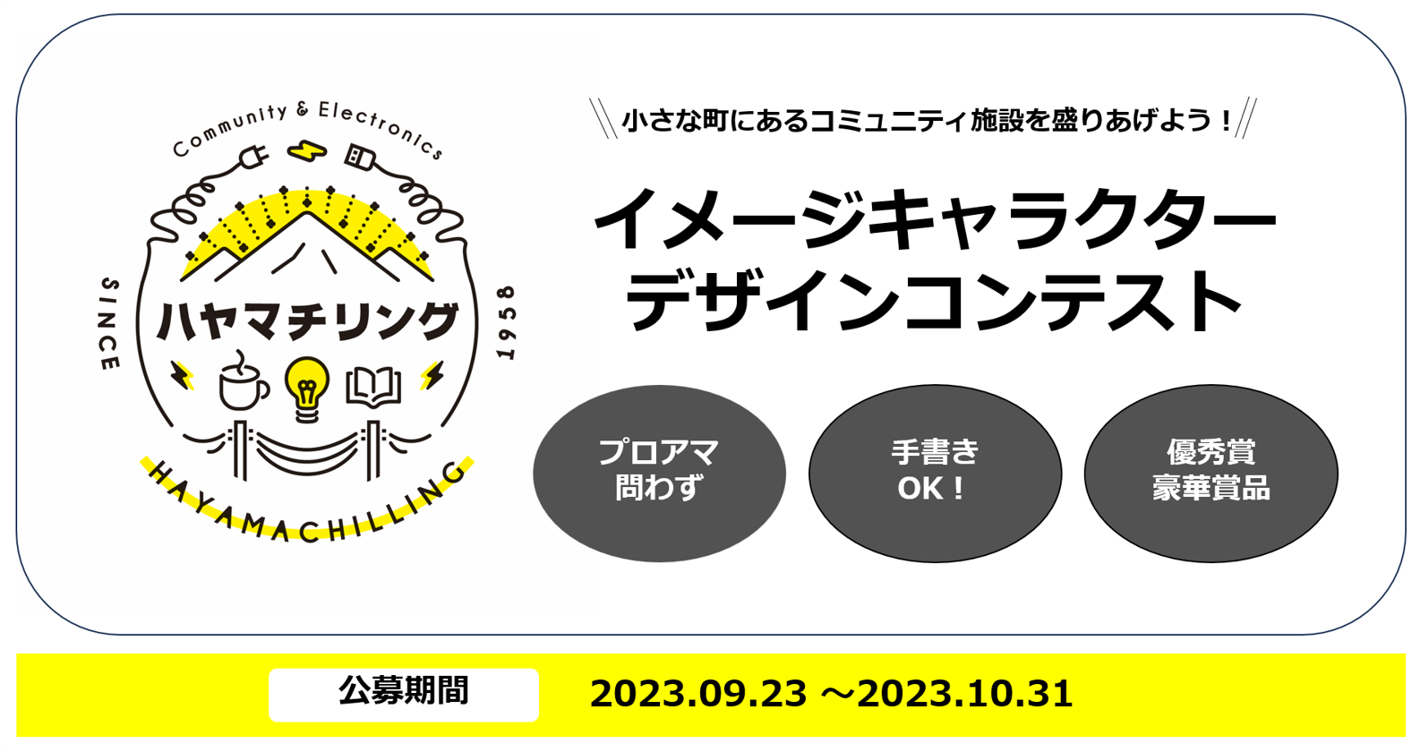 当社ナカイテレビが運営するコミュニティ施設「ハヤマチリング」のキャラクターである「ハヤマチコ」のデザインを募集致します。
