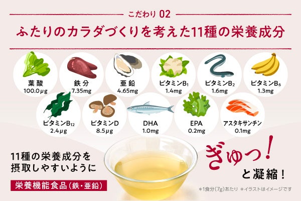 ②ふたりのカラダづくりを考えた11種の成分を配合