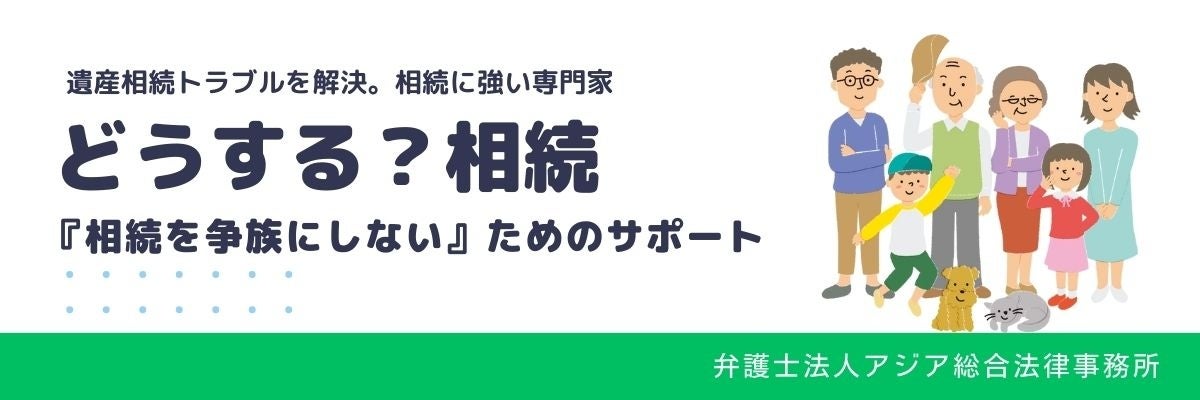 弁護士法人アジア総合法律事務所は、遺産相続で親族間で争い、「争族」になることを防ぎたいという思いで、「どうする?相続」を展開し、遺言書、家族信託などの生前対策等を含む、相続問題に取り組んでおります。