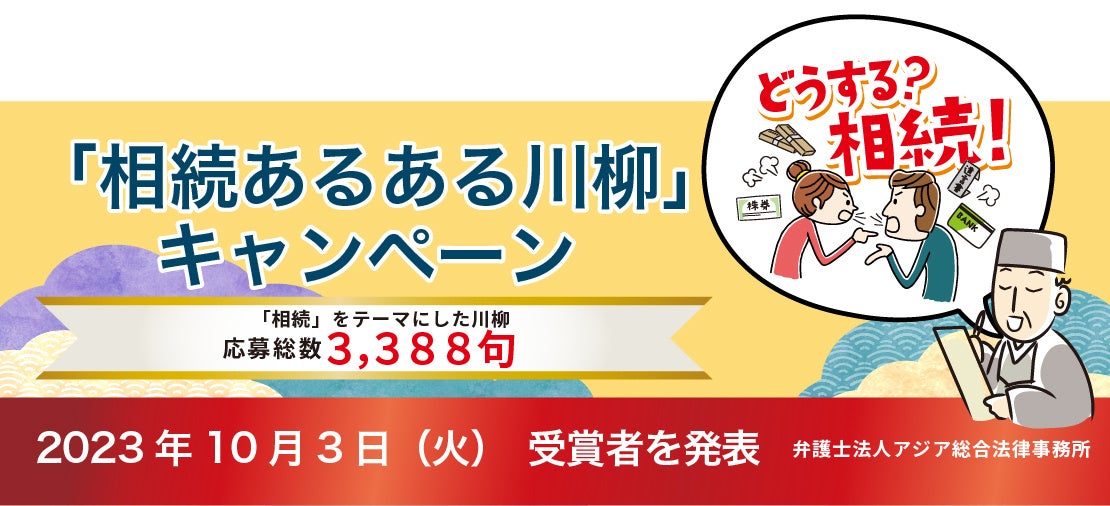 次回のコンテスト等の企画も計画しておりますので、今回惜しくも選ばれなかった方も、是非またご参加いただければ幸いです。弁護士法人アジア総合法律事務所では、相続にまつわる川柳を通じて、相続の事前対策の重要性を広め、「争族」のない社会の実現を目指していきたいと考えております。