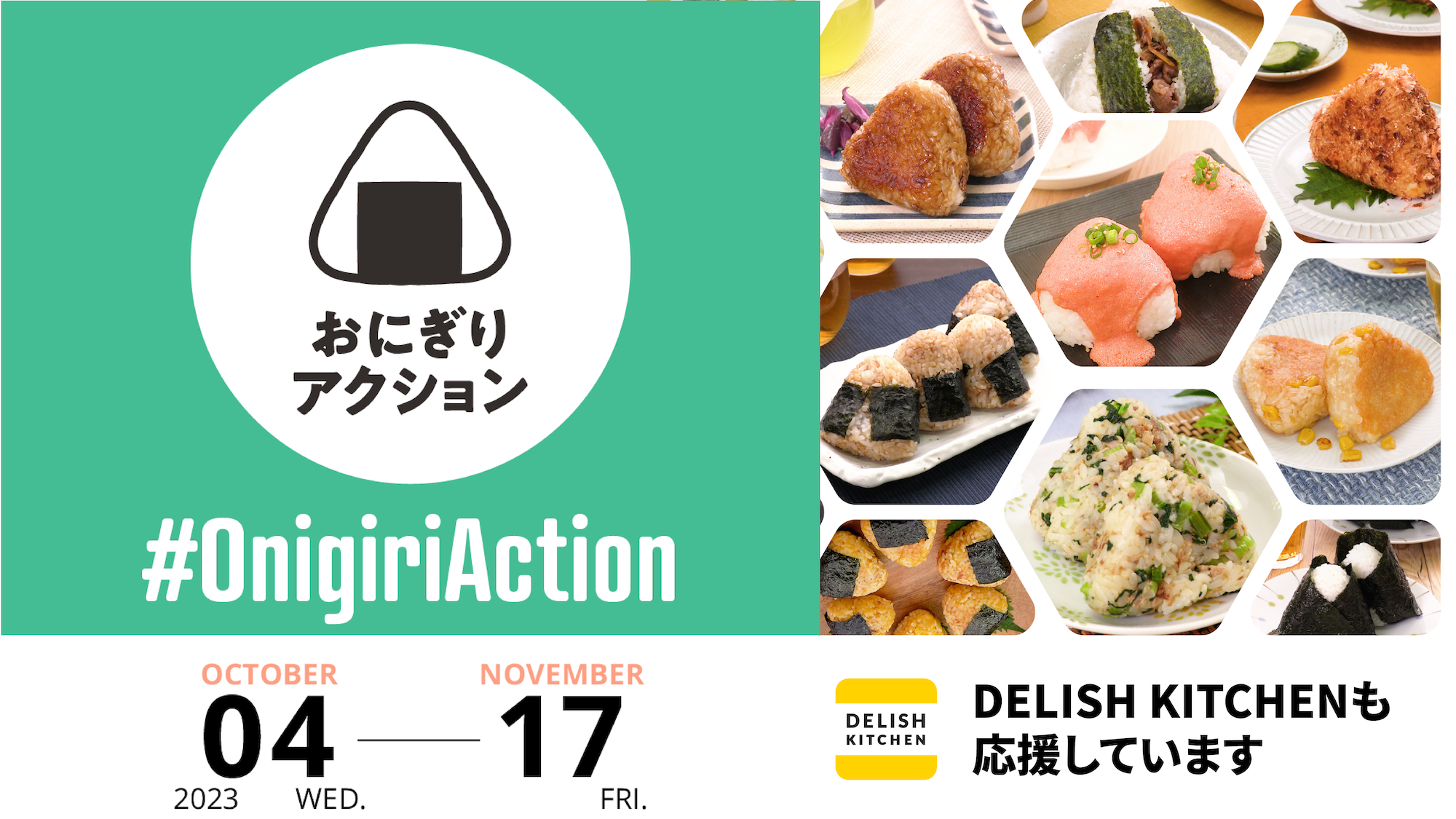 『DELISH KITCHEN』では、「食」を通じて世界の食料・健康問題の解決に取り組んでいる「TABLE FOR TWO」に共感し、同じく「食」という領域で多くの方に情報を届けるメディアとして、社会の課題解決に対して少しでも力になりたいという思いのもと、2019年より「おにぎりアクション」を応援しています。『DELISH KITCHEN』のSNSアカウントによるリーチ力を生かし、様々なおにぎりレシピを発信することで「おにぎりアクション」の認知拡大をサポートしてまいります。