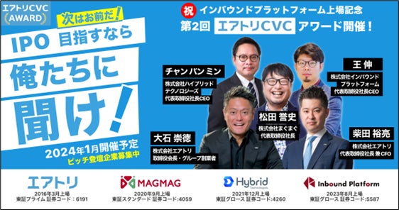 インバウンドプラットフォーム上場記念!2024 年 1 月に『第 2 回エアトリ CVC アワード』開催決定!~ピッチコンテスト開催!登壇企業募集中!~