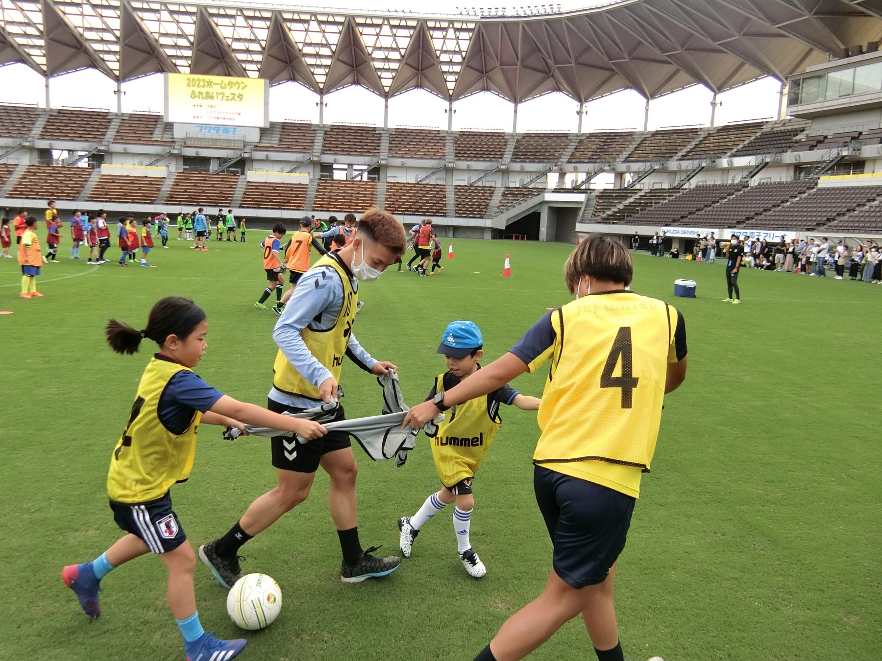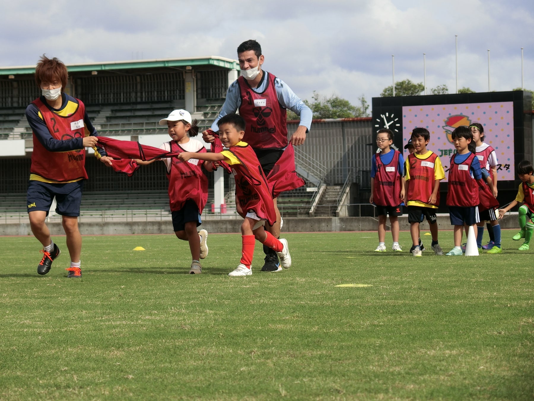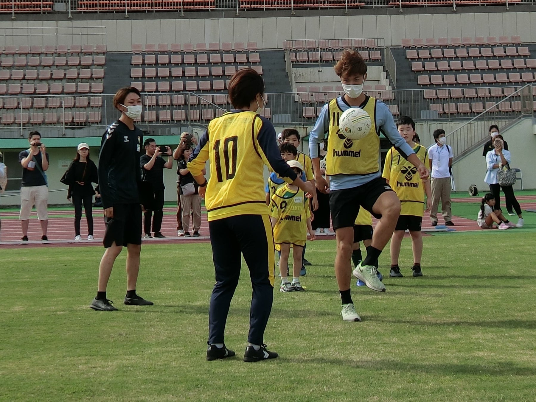 競争の最後は選手同士でリフティング10回。リフティングの上手さに子どもたちからはスゲーと声が漏れていました!