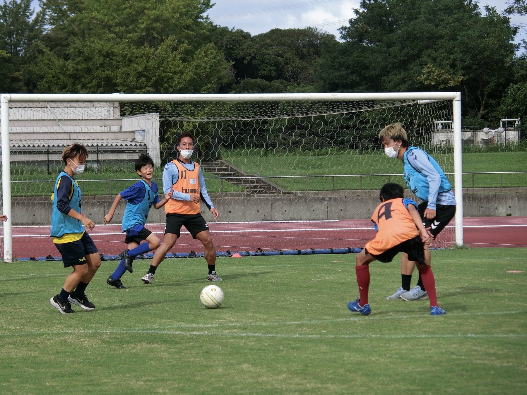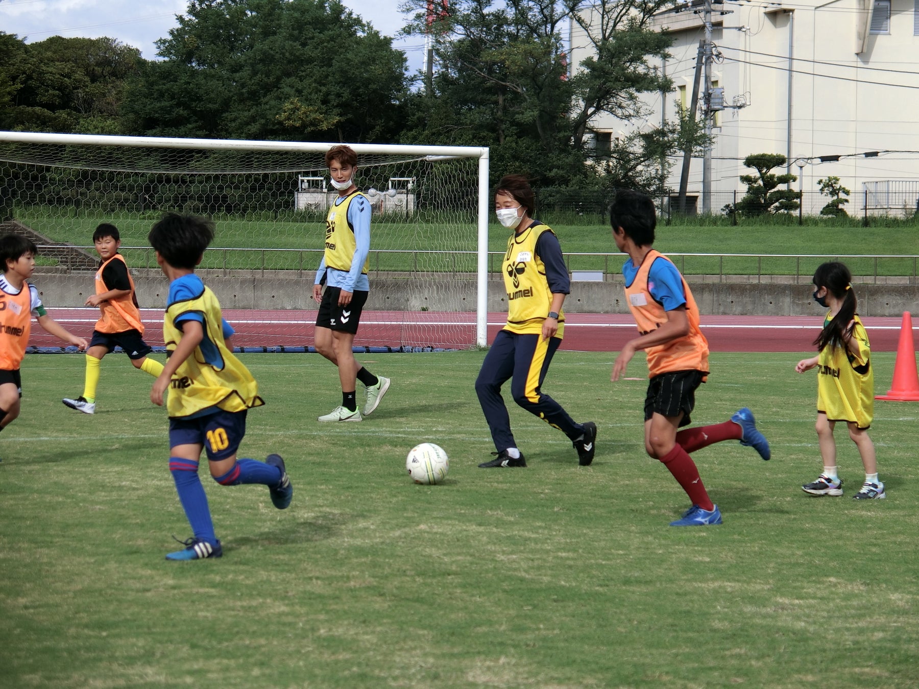 米倉恒貴選手からパスを貰って、山口千尋選手へパス!チームでパスを40回競争。