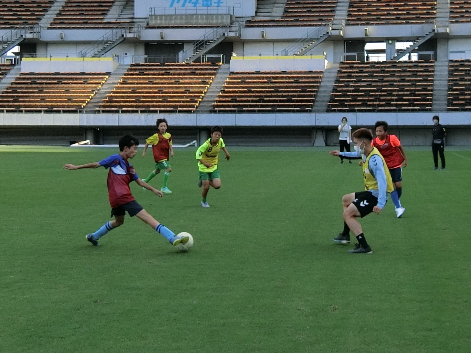 米倉恒貴選手からパスを貰って、山口千尋選手へパス!チームでパスを40回競争。