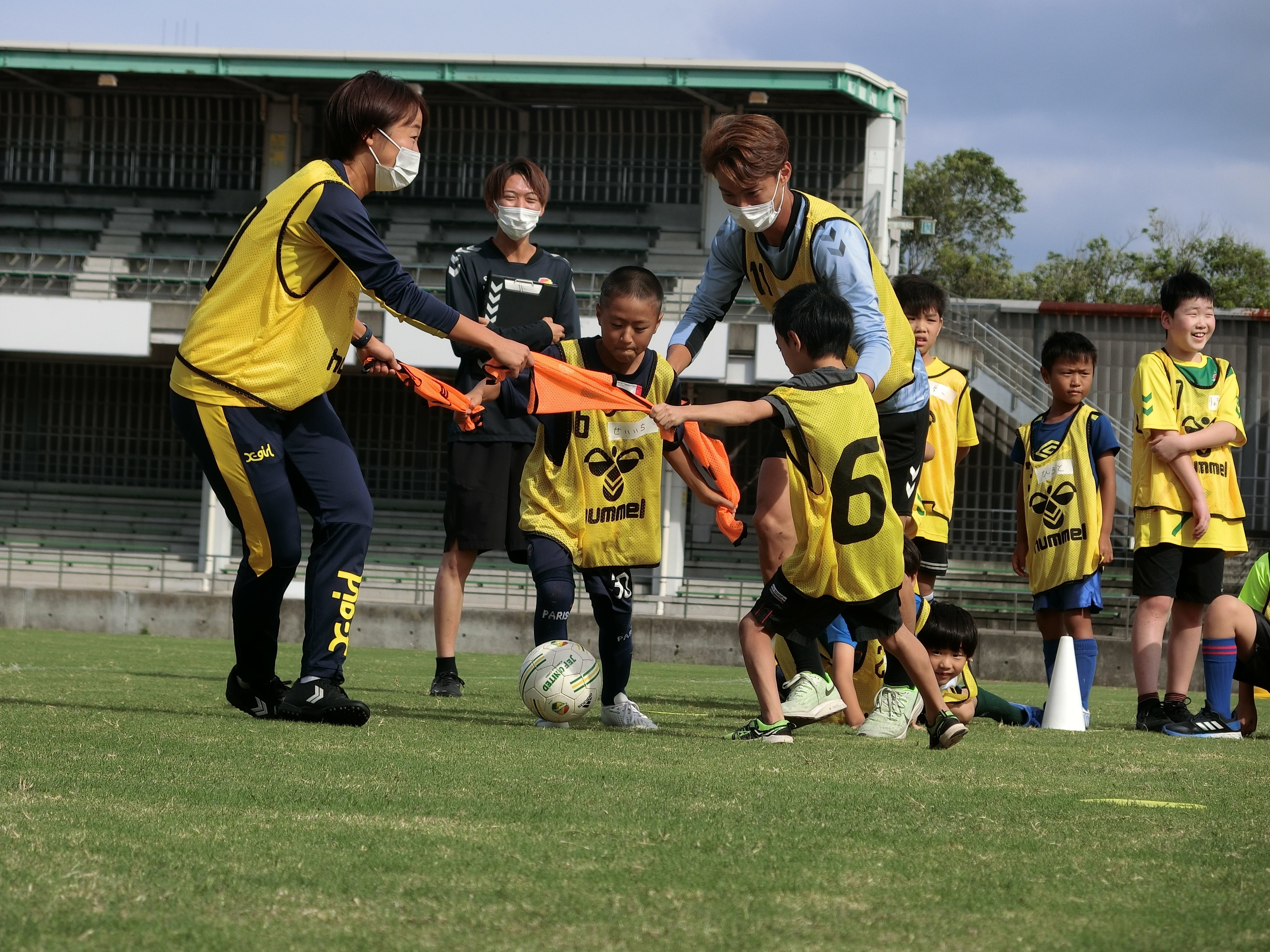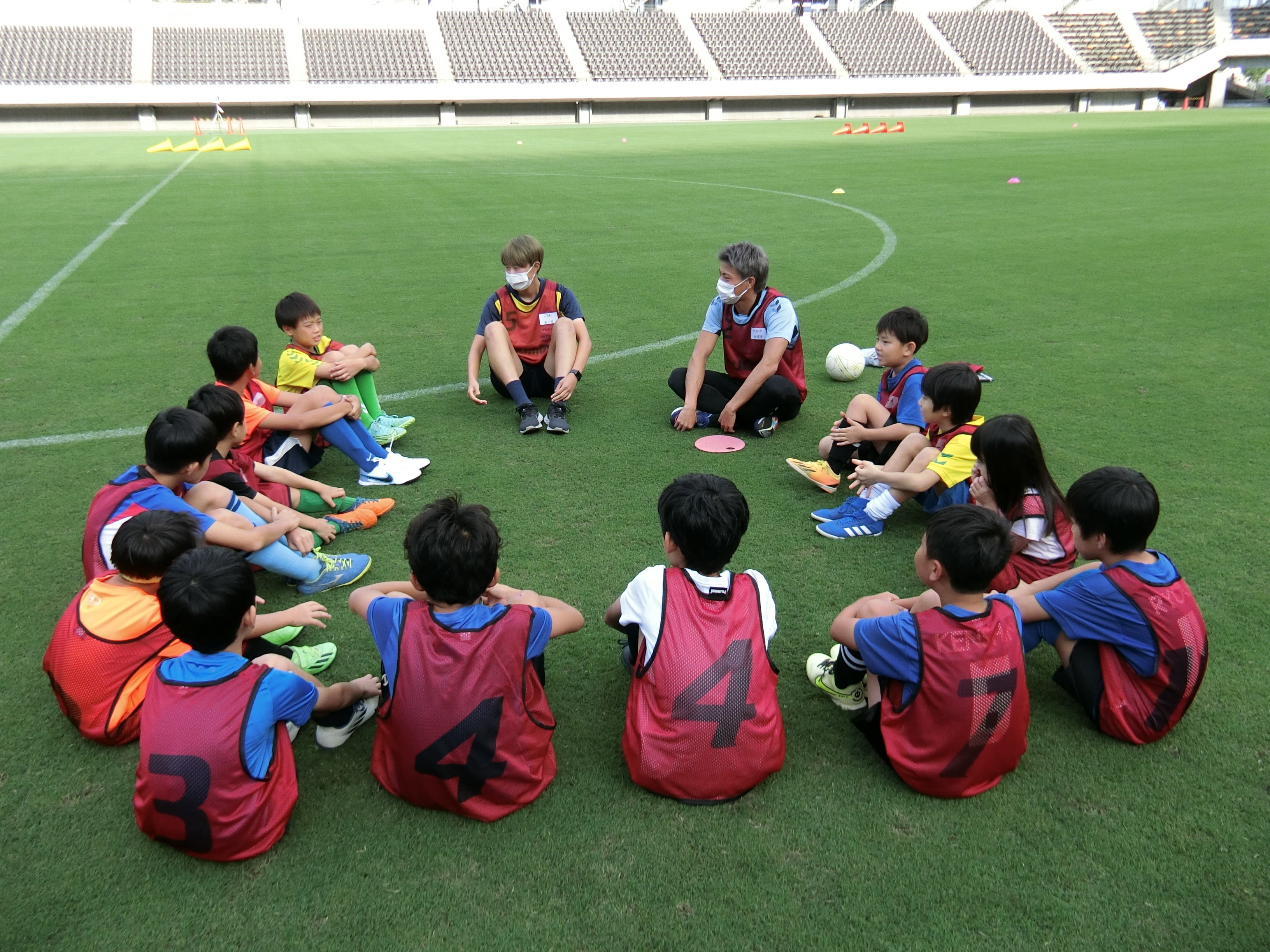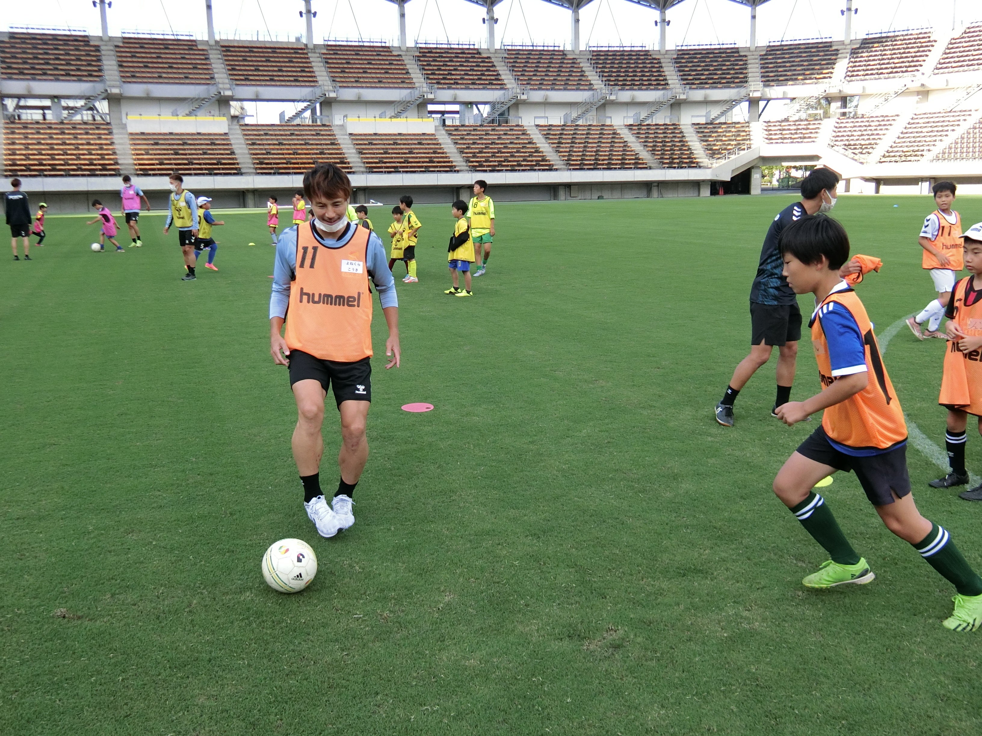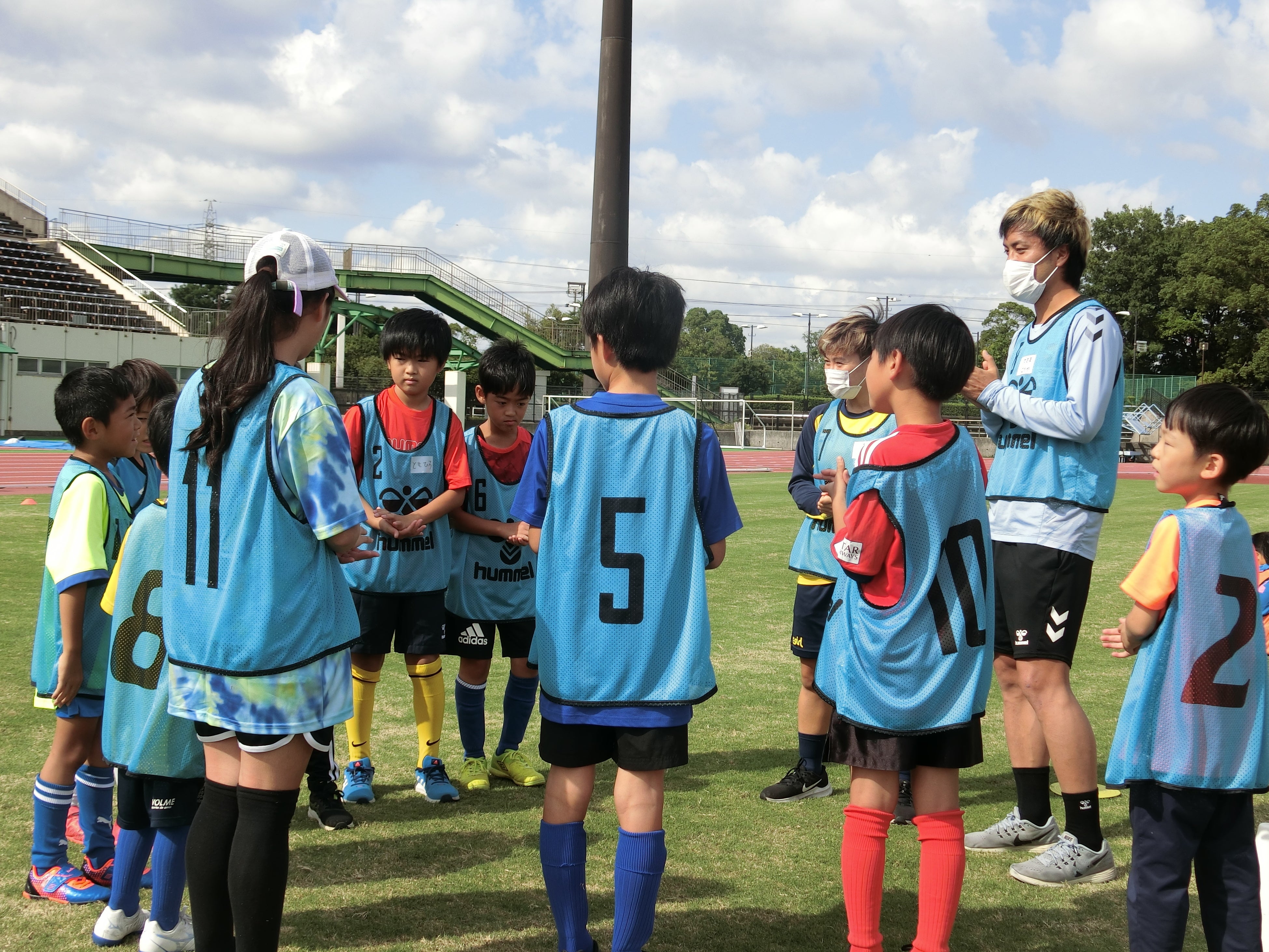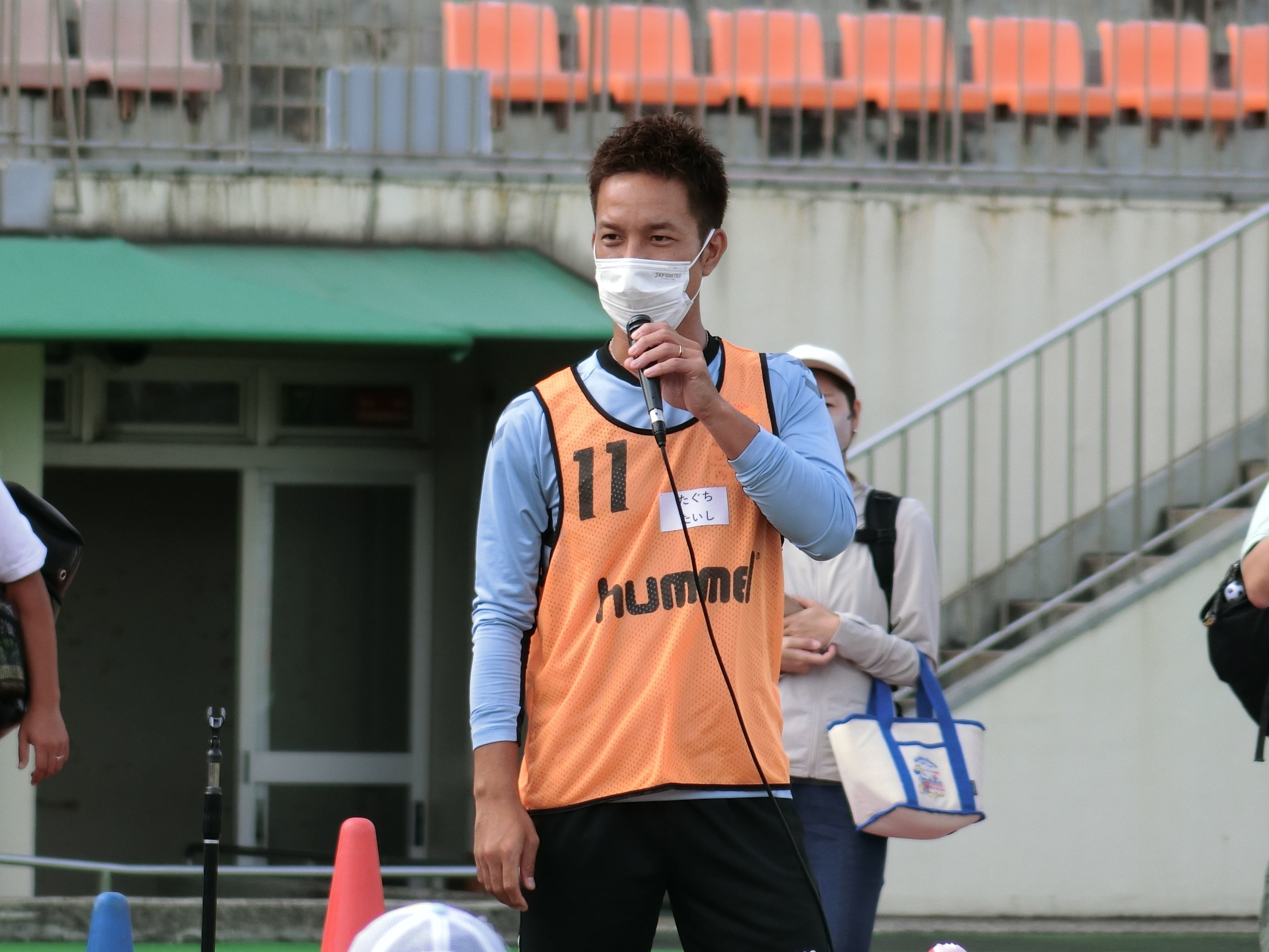 競争の最後は選手同士でリフティング10回。リフティングの上手さに子どもたちからはスゲーと声が漏れていました!