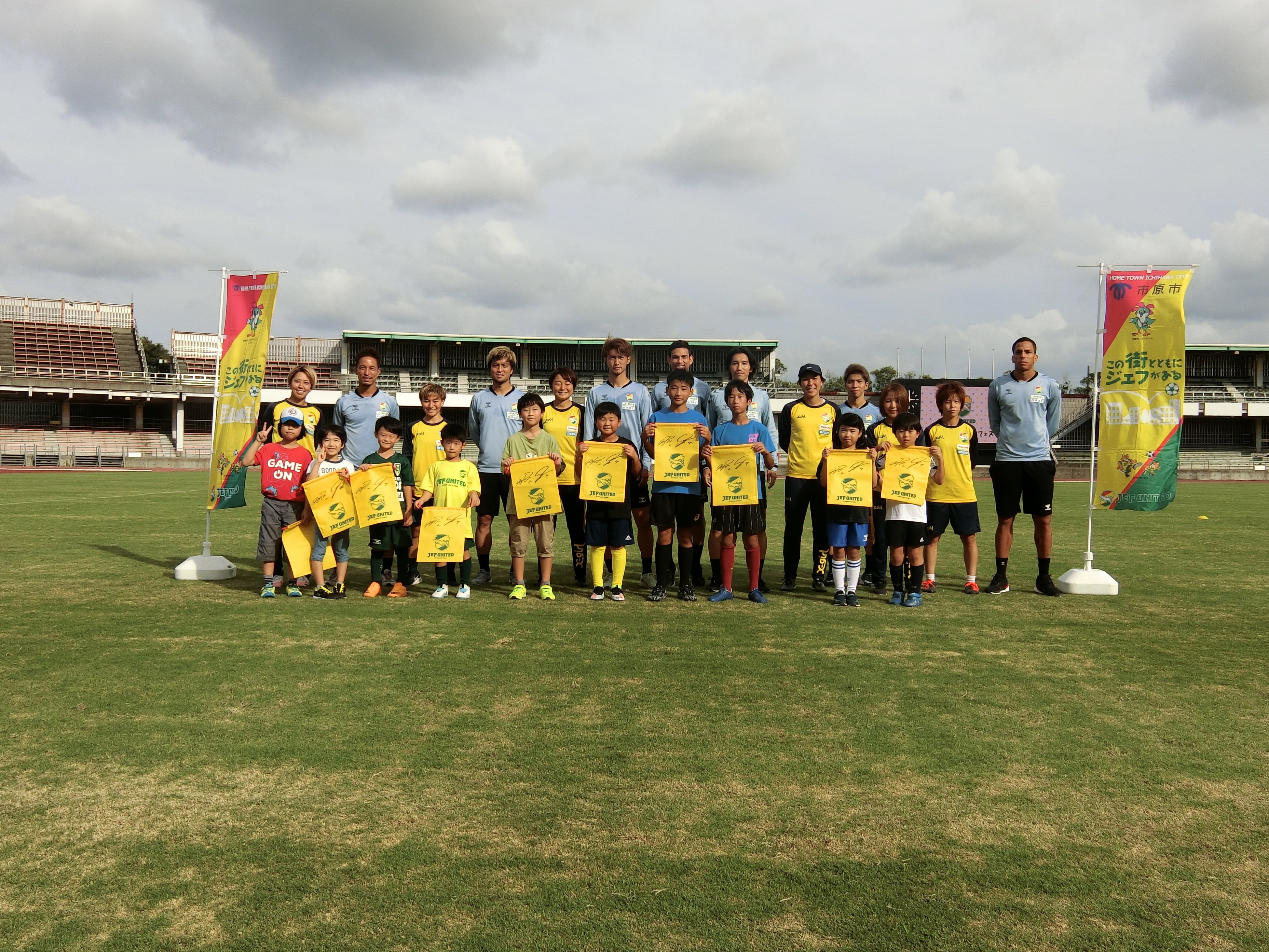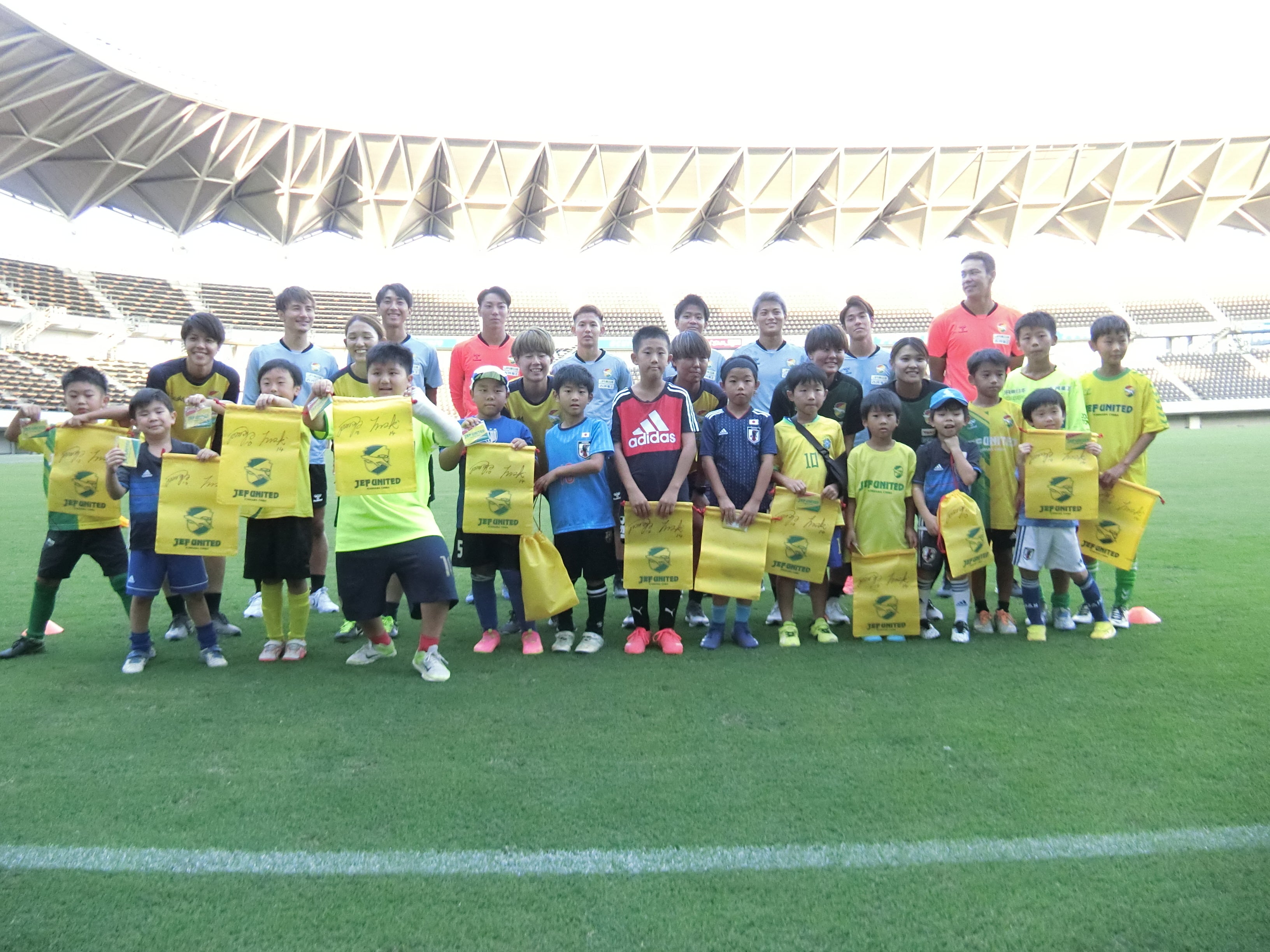 最後に一緒にプレーした選手からシューズケースをプレゼント。次は、フクアリに応援しに来てね!