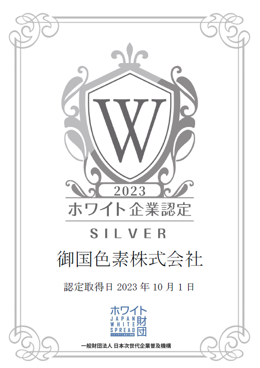 御国色素株式会社様が、一般財団法人日本次世代企業普及機構(通称:ホワイト財団)が運営する「ホワイト企業認定 シルバーランク」を取得しましたことをお知らせいたします。