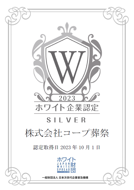 株式会社コープ葬祭は2023年10月1日に「ホワイト企業認定 シルバーランク」を取得されました!