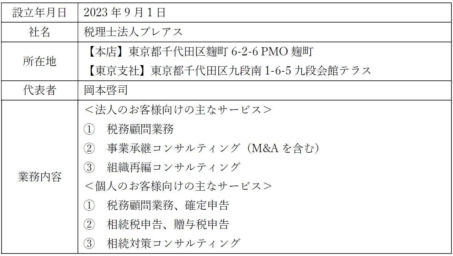 2023年1月:岡本啓司税理士事務所 開設 (※)税理士法人プレアスの前身