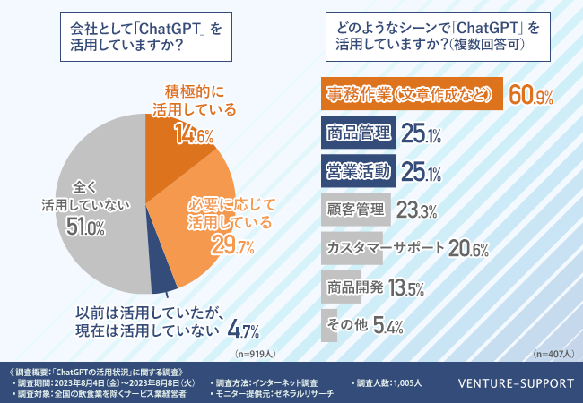 文章作成などの事務作業や商品管理、営業活動でChatGPTを活用している企業が多いことが明らかになった。