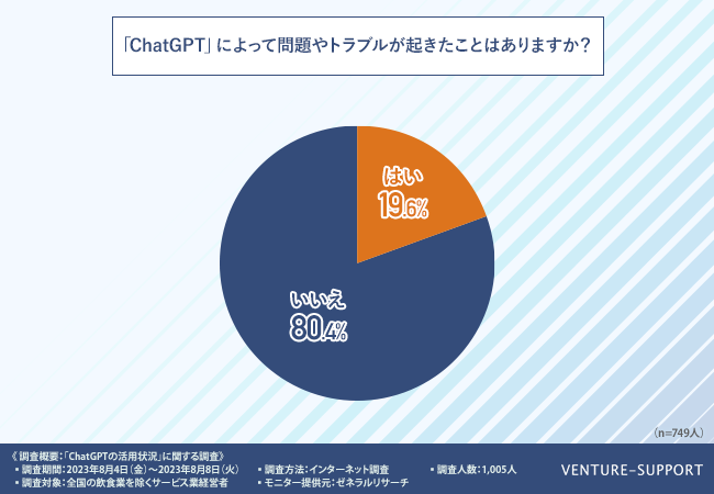 「ChatGPT」によって問題やトラブルが発生した企業は約2割