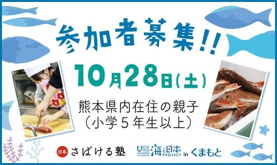 本イベントでは、海を身近に感じてもらい、海を大切にすることを学んでもらうことを目的としています。熊本の台所といわれる田崎市場で当日おこなわれる水産せりを見学したり、各家庭まで海からどのようにして魚が届けられているのかを、市場で働く人に実際に聞いて・触れて、その日せり落とされた魚(アジとホウボウ)をさばく体験を行います。また、親子で学んだ様々なことを各自がSNSで発信してもらい、どのような反応があったのか、魚をさばく体験によって海とのつながりを自分ごと化し、より海に親しみを持ってもらうための学習の場です。
