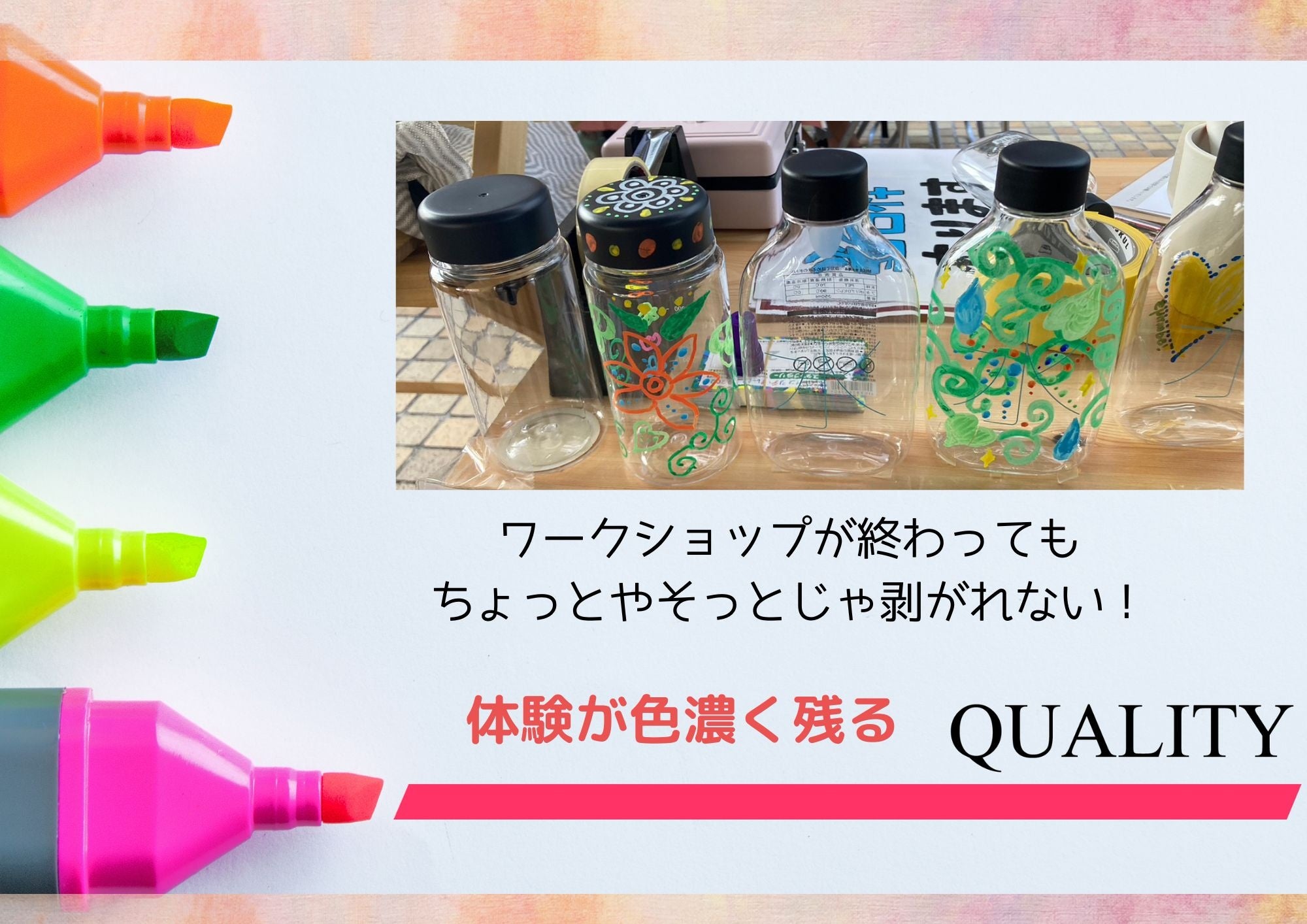 通常のマーカーや他のメーカー製品では、ワークショップ後に色が剥がれたりと品質に問題が生じることがありますが、当社塗料を使用したマーカーは精度が高いため、クオリティの高い顧客体験を提供することが可能です。