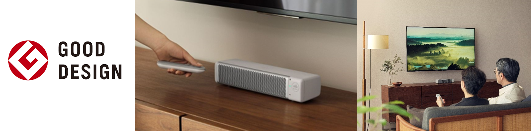 審査員コメントによると、「ガンマ波サウンド」に加工できる「ガンマ波変調技術」という独自の技術を用いることで、高齢者の生活を健やかにするという他に類を見ないアプローチ、シンプルながらも高い操作性、インテリアに調和するCMF、堅牢感さえ感じるモノとしての完成度など、ユニークな技術と高いデザイン性が両立していることが高く評価されました。また通信機能を通し、スピーカーの利用データを基にした「みまもり機能」を可能にするなど「音」以外の機能性を担保していることも商品のUXを高めていると認められました。