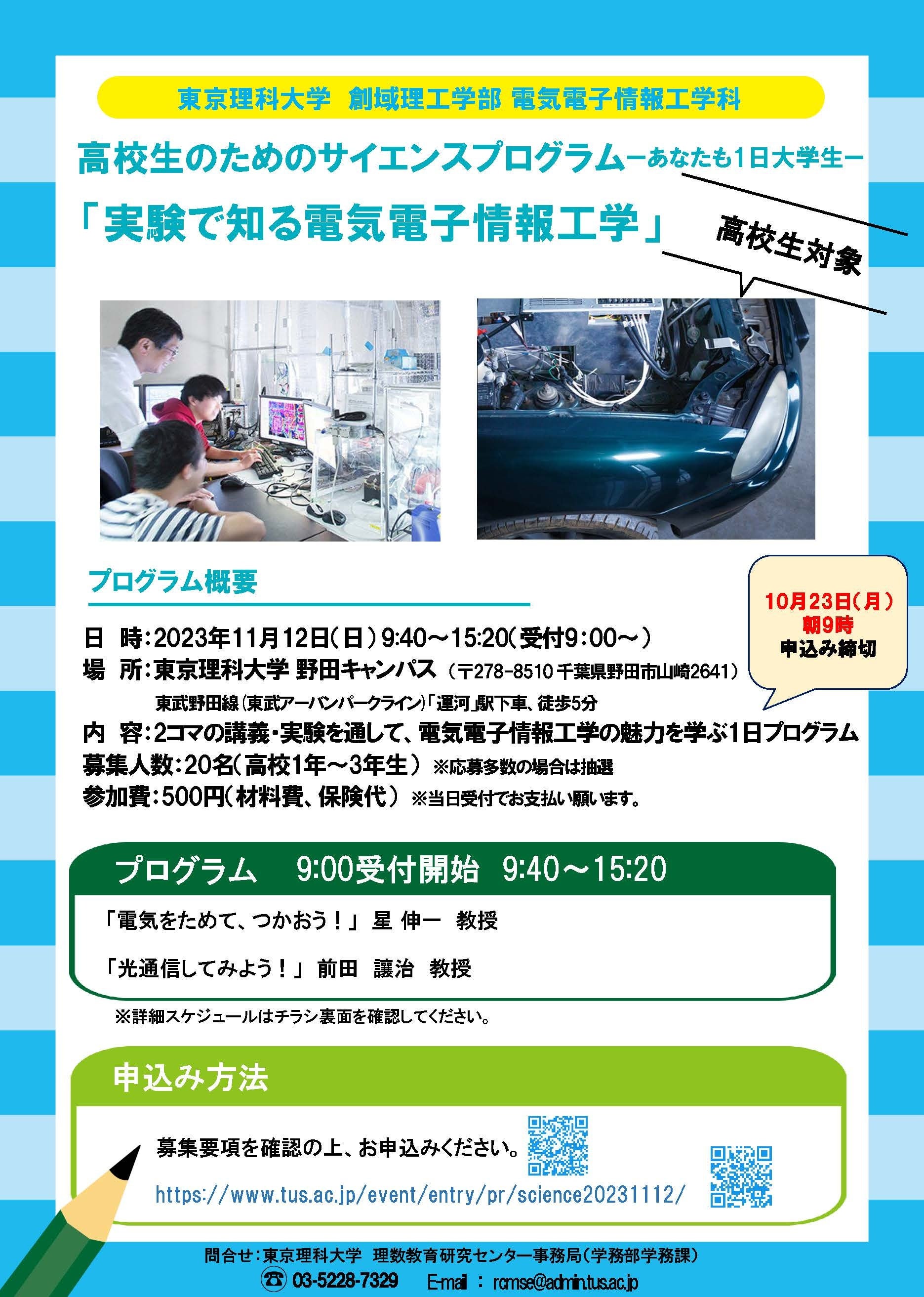 電気工学、情報通信工学に興味のある高校生、本学へのご入学を検討している高校生のイベント参加お待ちしております!