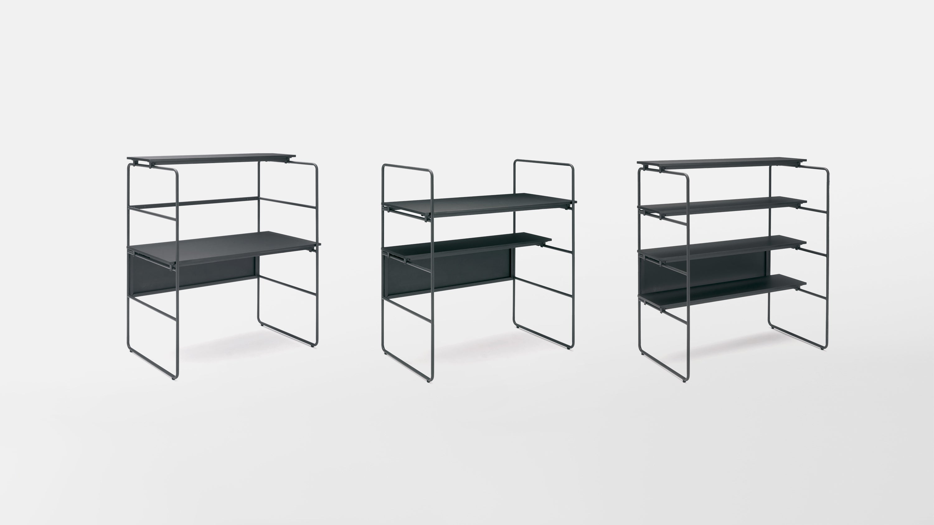 「ext.」は、スイッチデスク、スイッチチェア、スイッチシェルフの家具アイテムから成り立ち、この3種類を組み合わせるだけで、個人作業からグループでのミーティングまで組織の規模に合わせてフレキシブルにオフィス空間をデザインできるオフィス家具のシリーズです。それぞれの家具は簡単に高さや形を変えることが可能で、家具の入れ替えを行うことなく様々なワークスタイルに対応することができます。