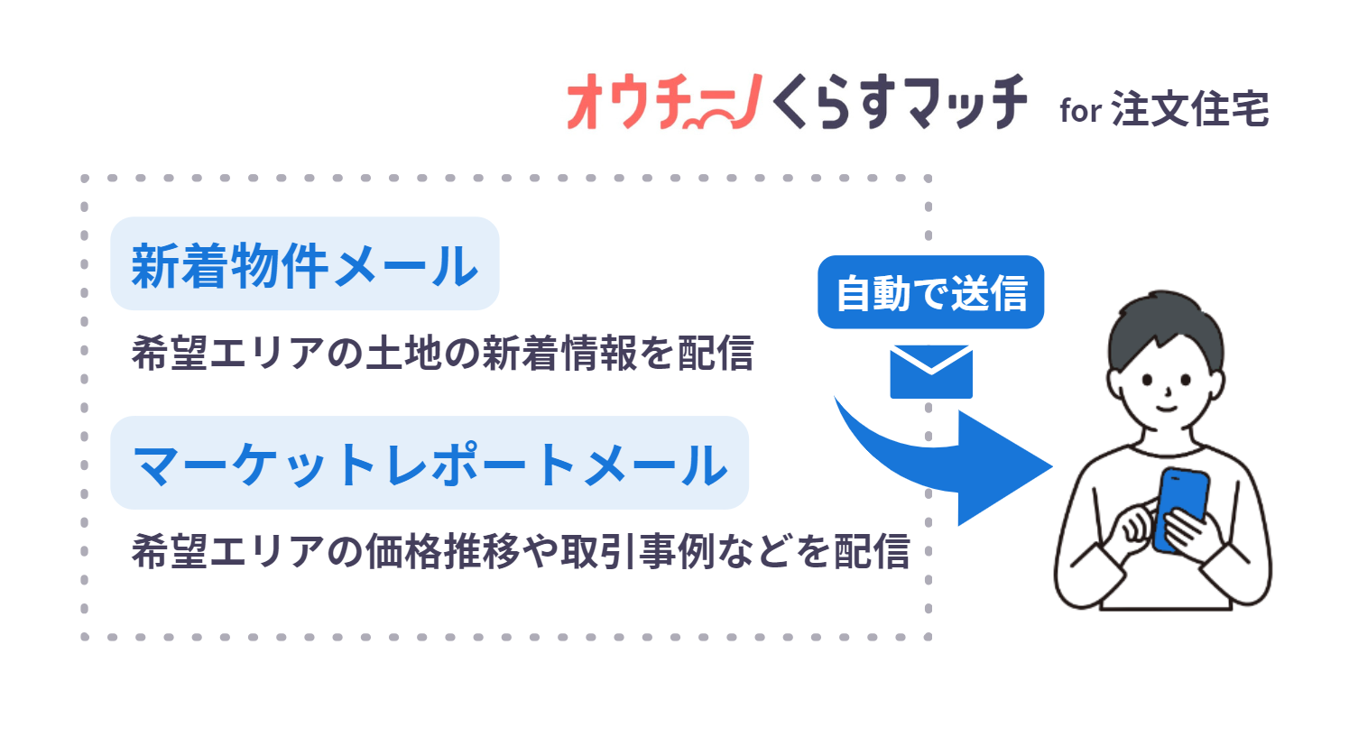 2. 新着の土地物件情報や、価格推移が分かるマーケットレポートを自動配信し、お客様を継続的にサポート