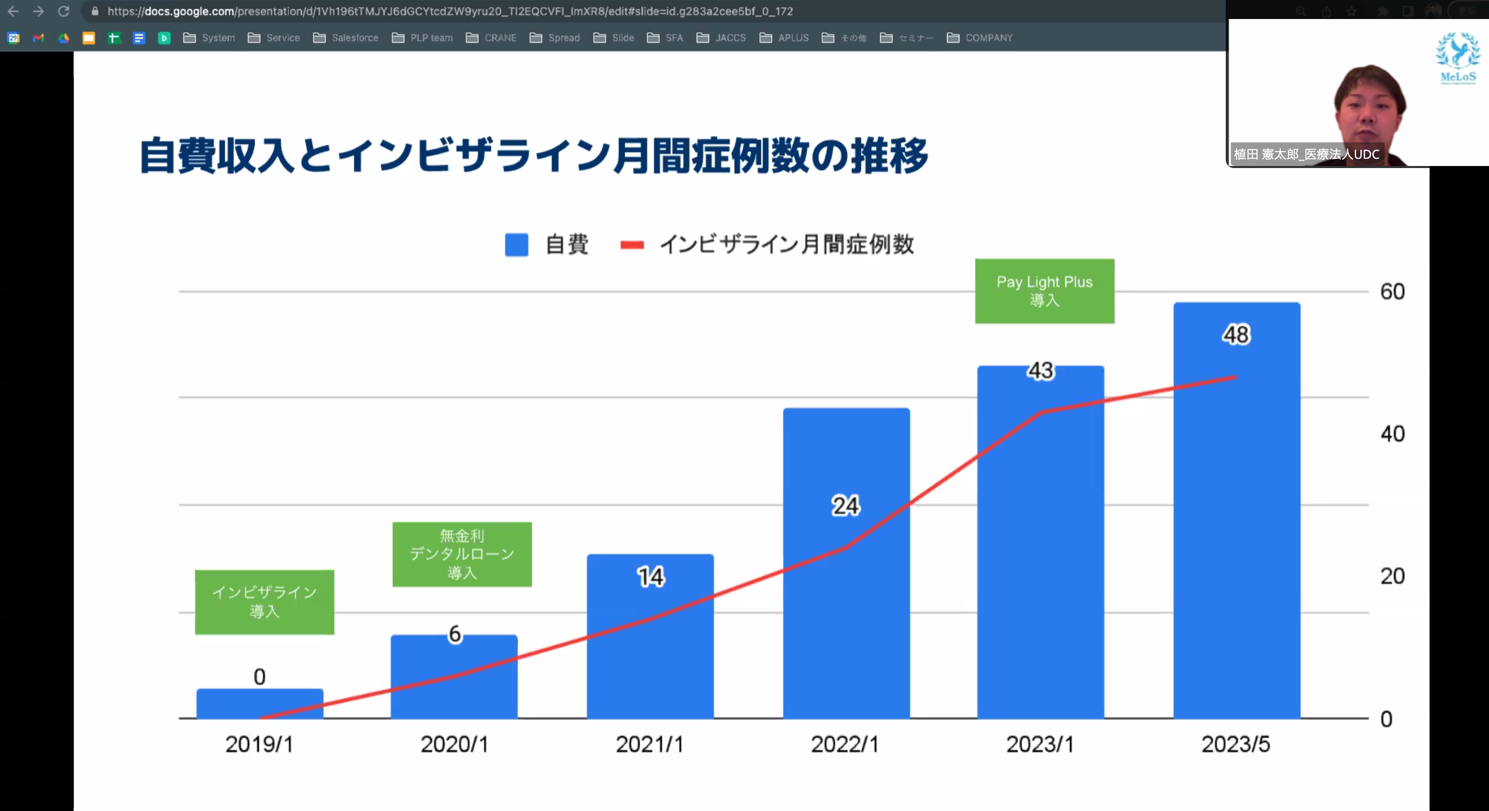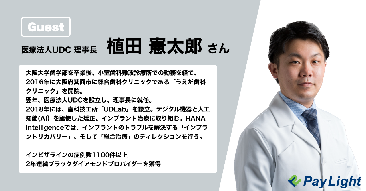 今回のセミナーでは、医療法人UDCの植田理事長をゲストにお招きし、無料で導入可能な自費診療を伸ばす「Pay Light Plus」の活用方法と、マウスピース矯正の「インビザライン」に着目して、自費収入を3倍に伸ばした戦略をお話しいただきました。