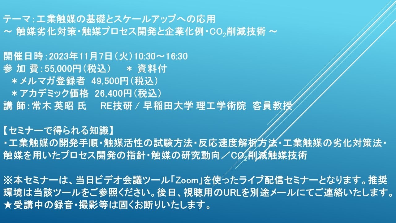 テーマ:工業触媒の基礎とスケールアップへの応用~ 触媒劣化対策・触媒プロセス開発と企業化例・CO2削減技術 ~
