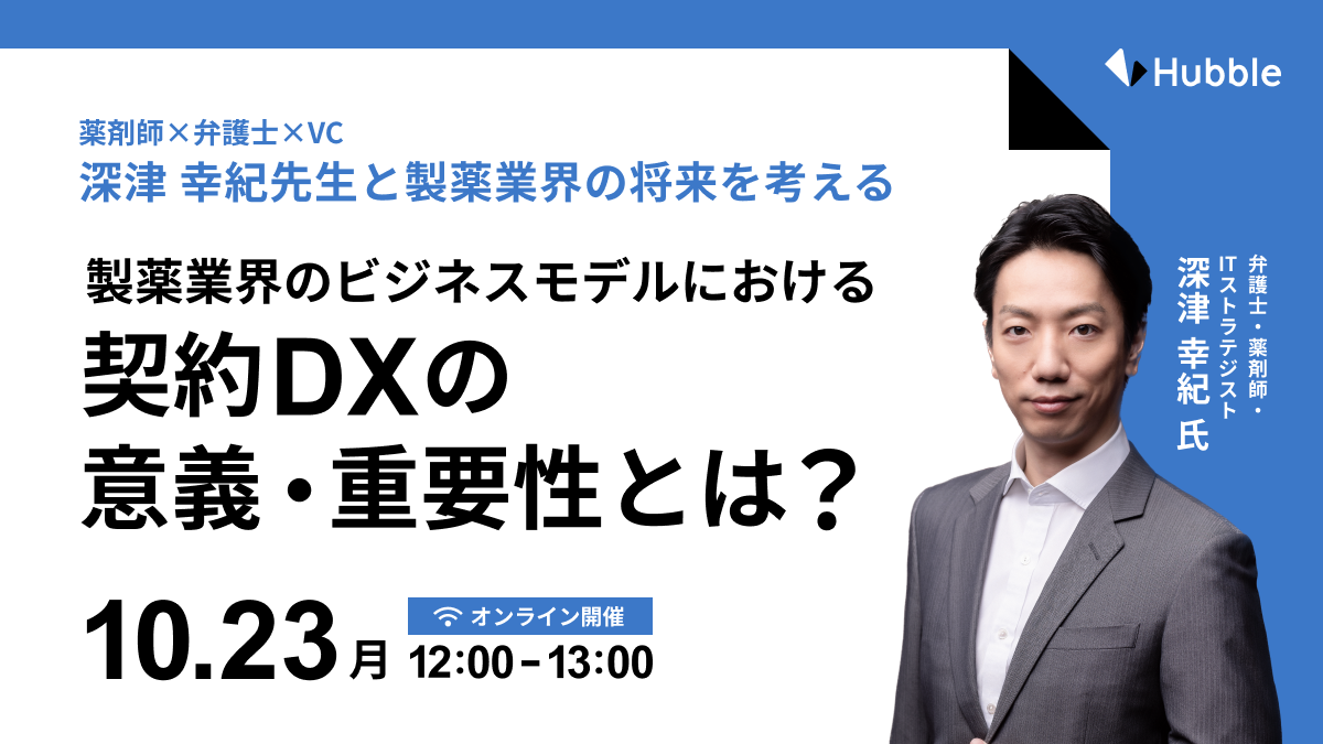 薬剤師・弁護士として製薬企業での業務経験を持ち、VCとしてご活躍する深津先生をゲストにお呼びし、製薬企業の法務担当者やこれから製薬企業の法務担当に関心のある方に向けて、製薬企業の基本的なビジネスモデルの解説及び製薬企業の今後の行く末と契約DXとの関係性についてご解説いただきます。