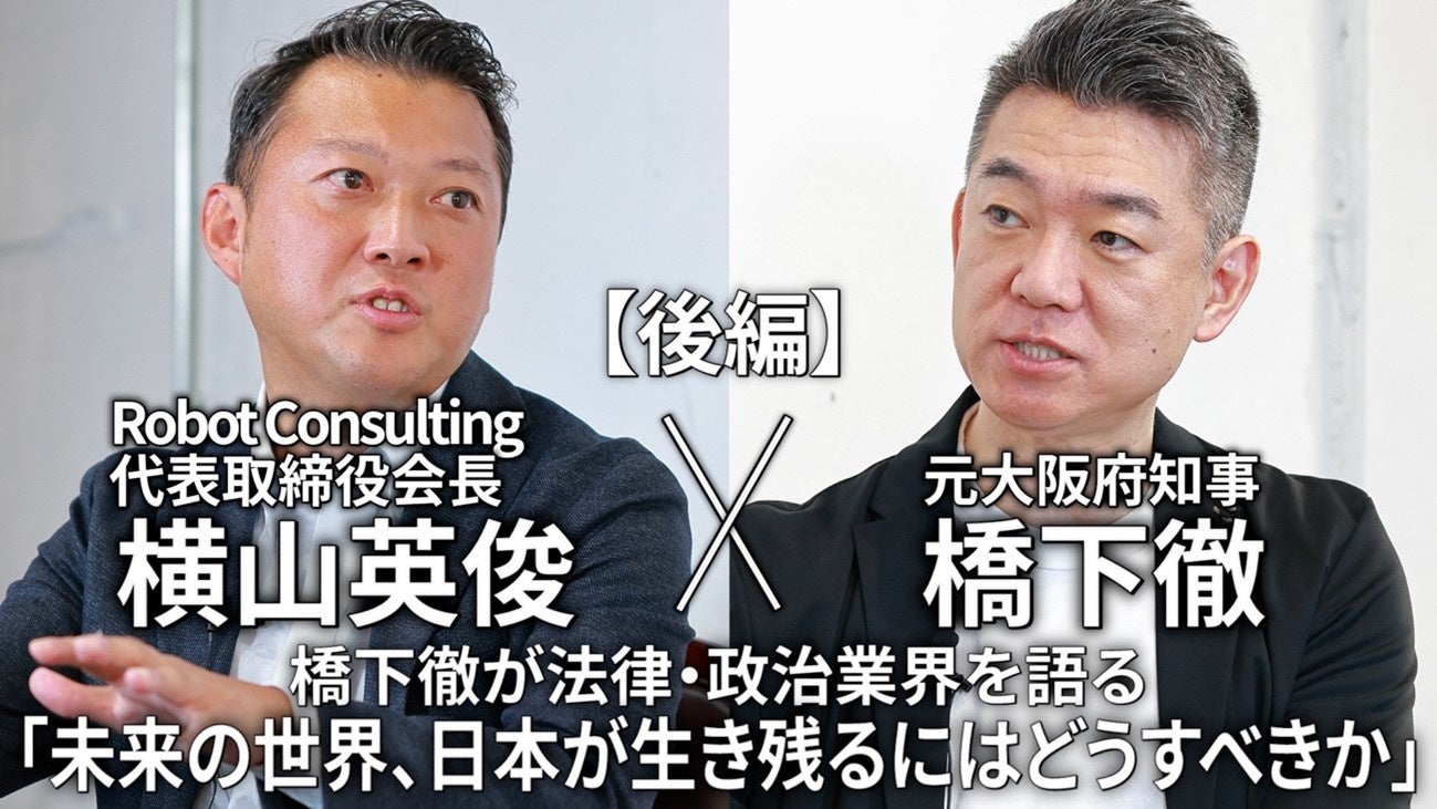 対談後半では、司法のAI化に関する見解が交わされました。橋下氏の「士業の多くはAIで行えるが、判決に対する納得感や権威性には人間の関与が不可欠」という主張に対し、横山氏もAIの専門領域化と人間の管理の必要性の認識を共有。