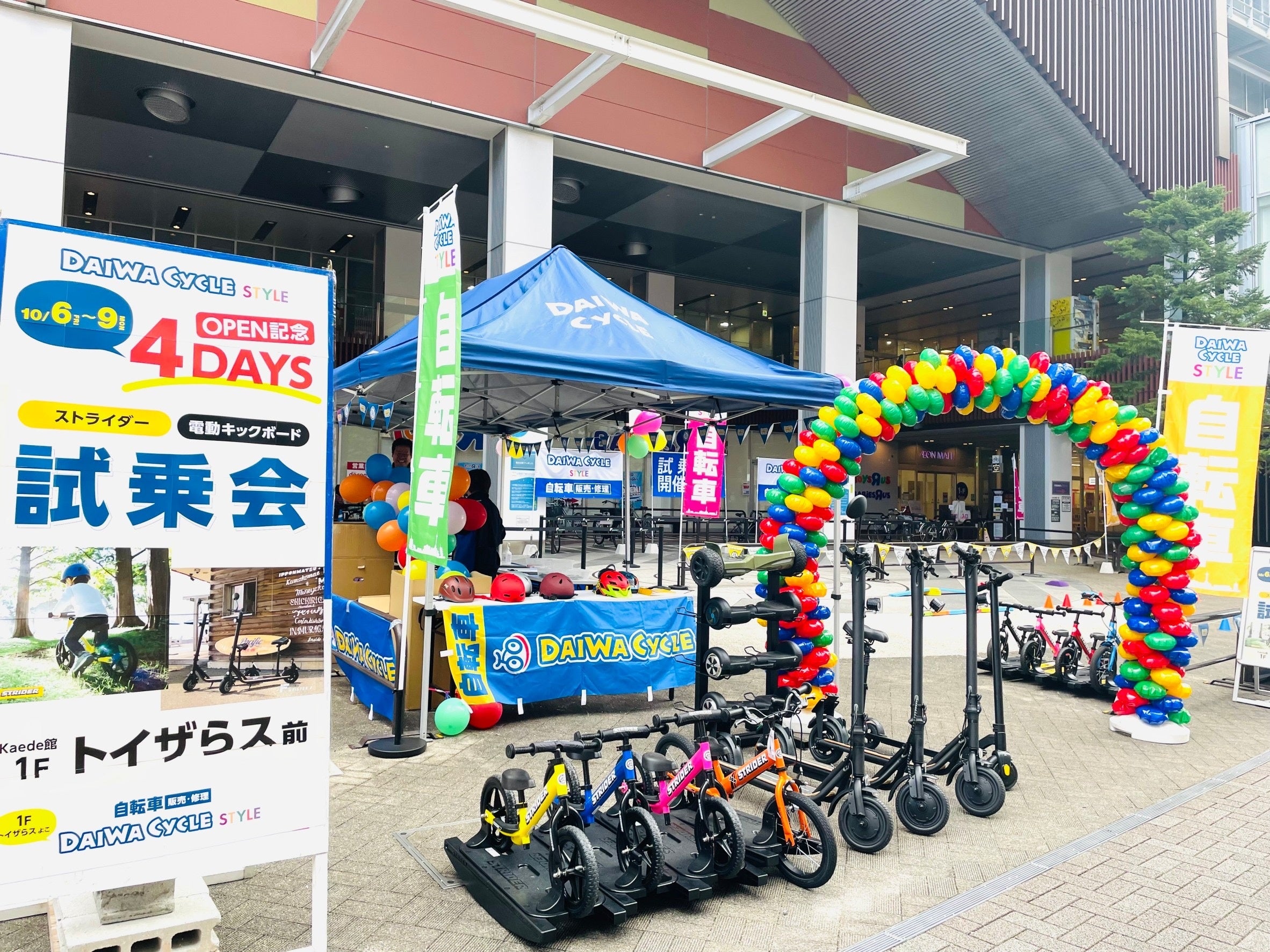 ダイワサイクルスタイル イオンモールKYOTO店にてオープンを記念した試乗会を開催いたします。試乗会では、お子様向けランニングバイク「ストライダー」の試乗コースをご用意いたしております。初めてストライダーを体験されるお子様でも走りやすいコースになっております。