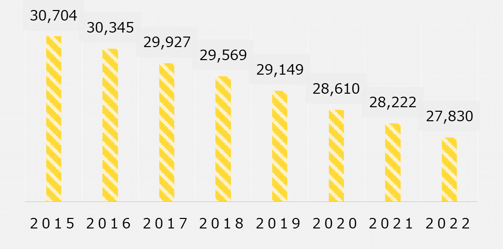 2015年から昨年の2022年において毎年人口が減少。年齢構成においても、60歳以上の人口が全体の45%を占めている。しかし様々な支援やプロモーションによって、2022年、13年ぶりに転入超過に。