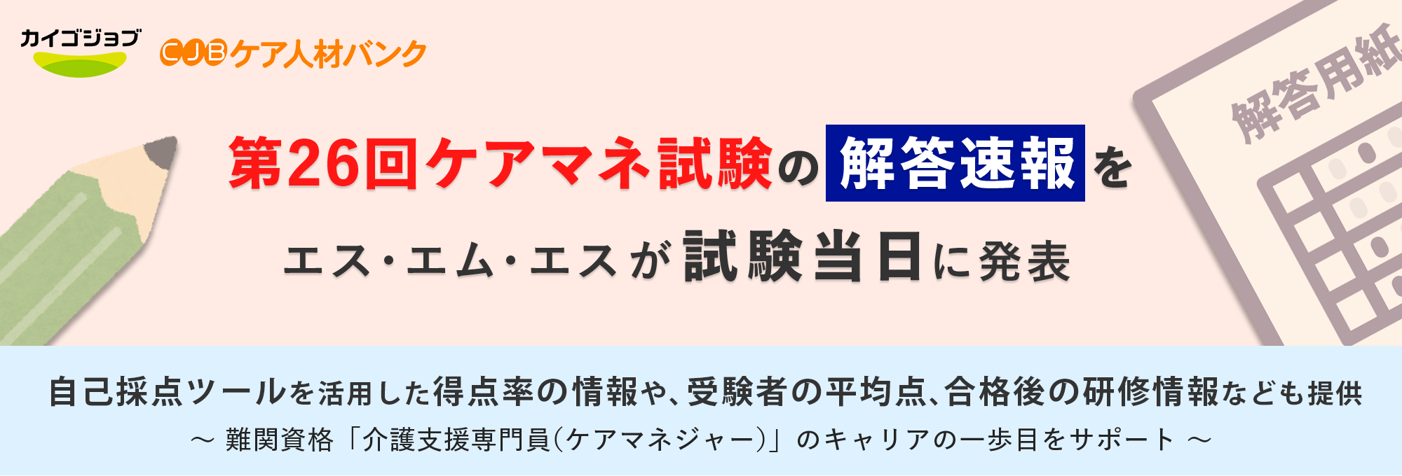 カイゴジョブ解答速報事前登録URL:https://www.kaigojob.com/professions/care-manager/article-care-manager-examination-answer.html