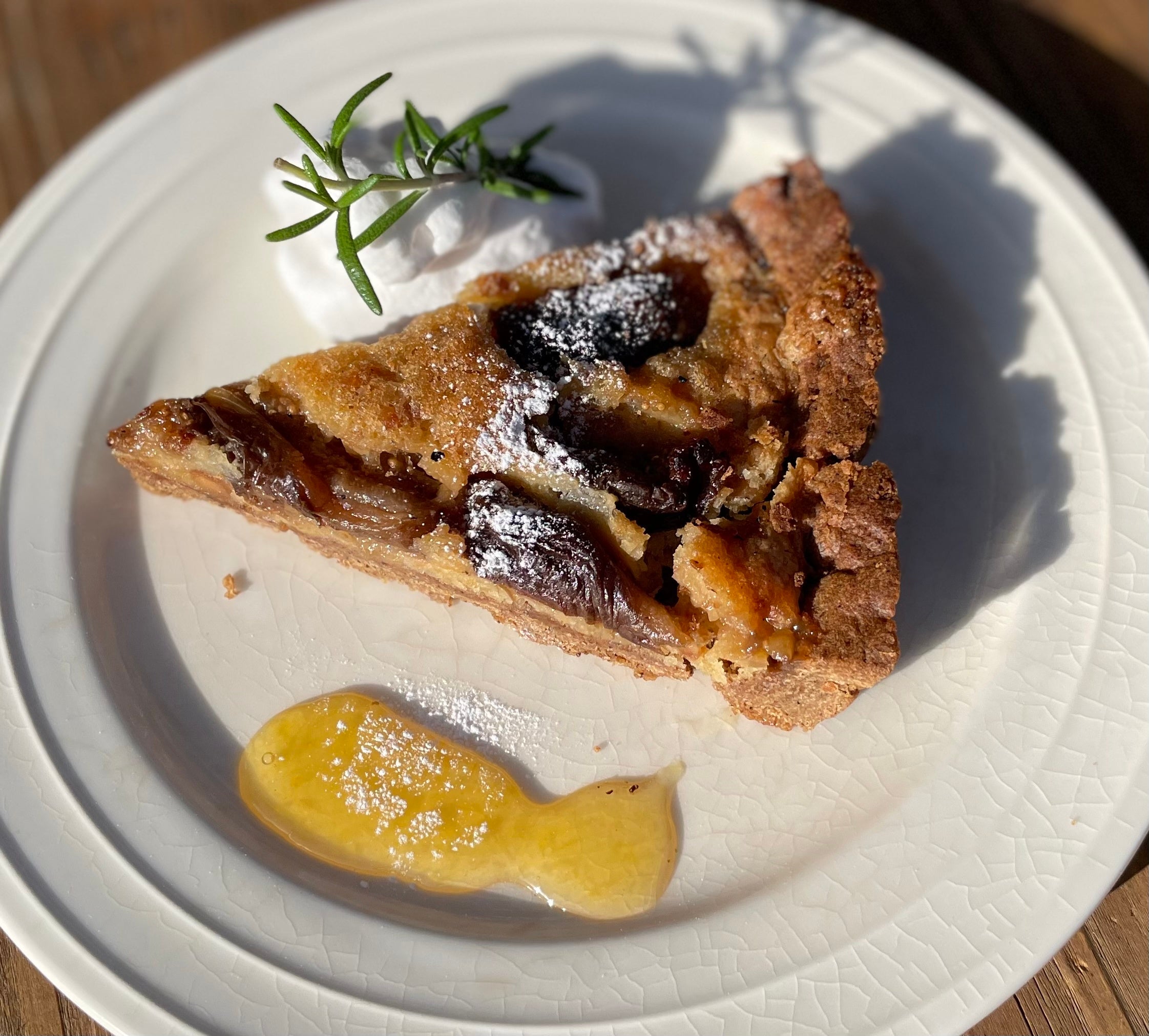 皆さんが味わう珈琲は、コーヒーノキの種子の部分です。これまで珈琲業界では、果皮(コーヒーピール)が大量に廃棄されてきました。しかし、実はこの果皮、ポリフェノールや鉄分が豊富なスーパーフードなのです。FARMERS PASSION COFFE では、この珈琲の果皮を使ったクラフトコーラや、果皮を練りこんだ生地で焼いた季節のタルトを提供しています。今の季節は、無花果(写真)、サツマイモ、パンプキン等。栄養豊富でフードロス削減にも貢献するタルトは一押しメニューです。