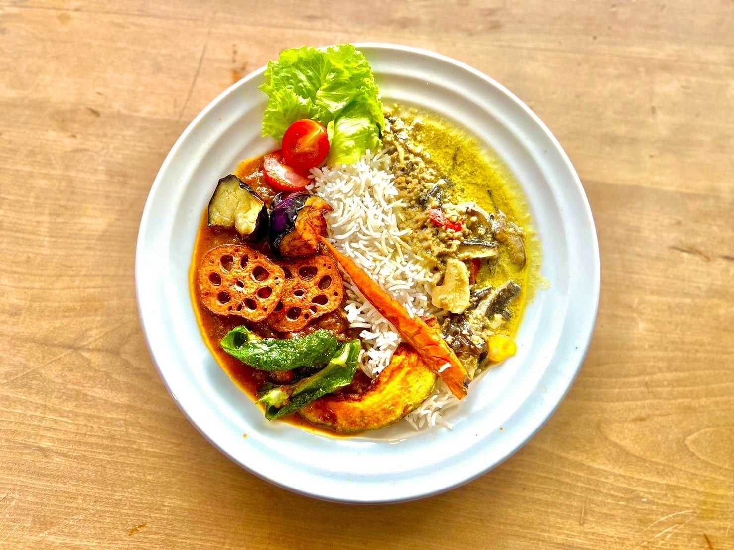 自家製スパイスカレー2種の「あいがけカレー」(単品1200円)
