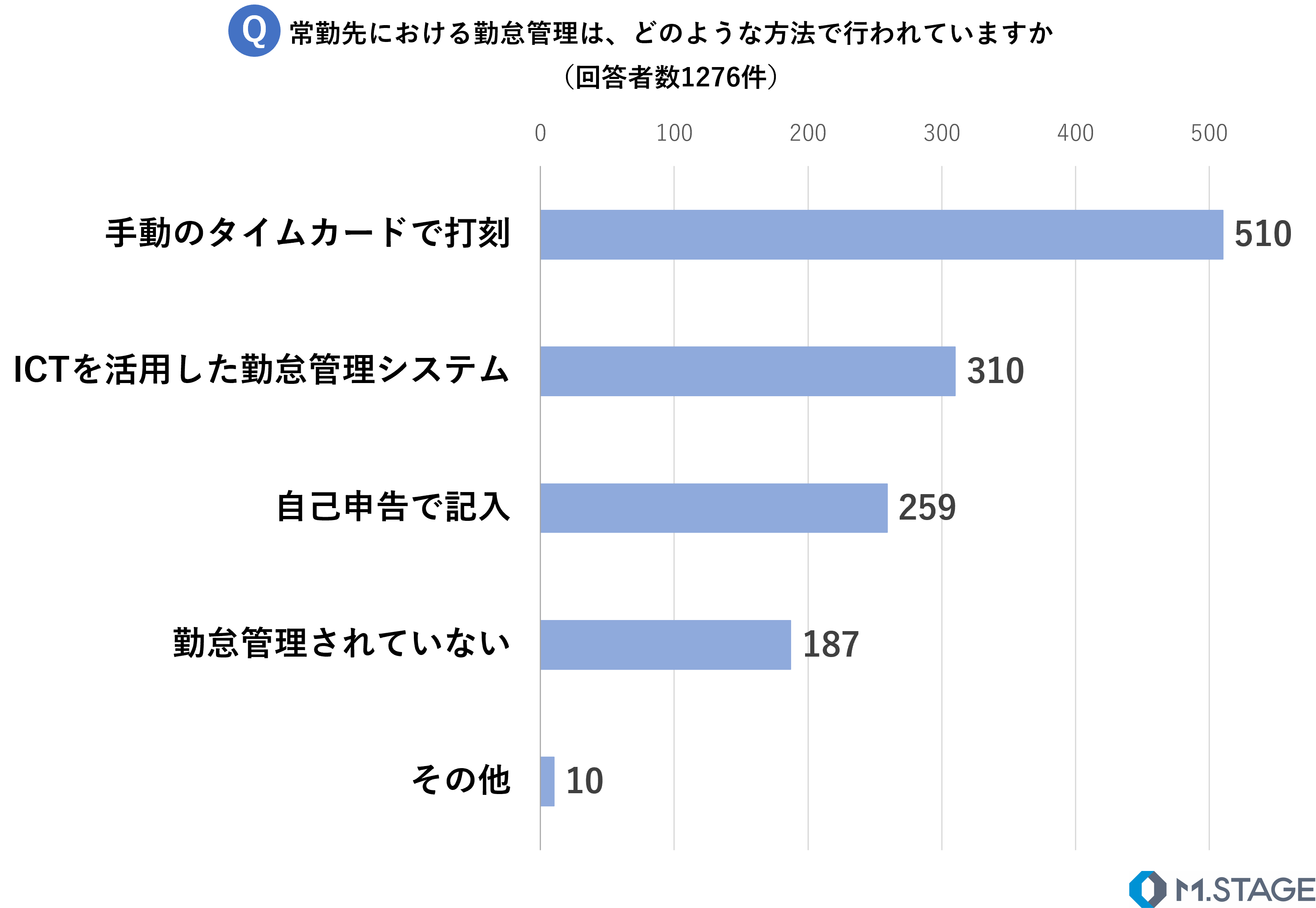 10. 常勤先における勤怠管理で最も多いのは「手動のタイムカードによる打刻」