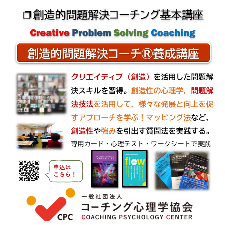 :「クリエィティブコーチング心理学基礎講座(創造的問題解決コーチ)」
