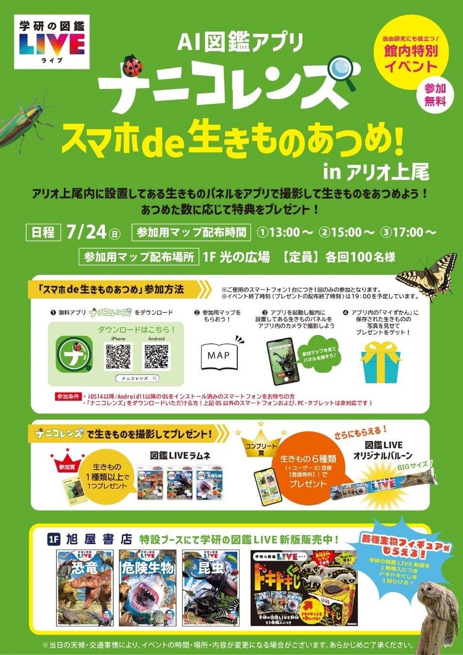 夏休みの始まりに合わせて、学研のAI図鑑アプリ『ナニコレンズ』を使ったイベント「スマホde生きものあつめ!」を実施いたします。