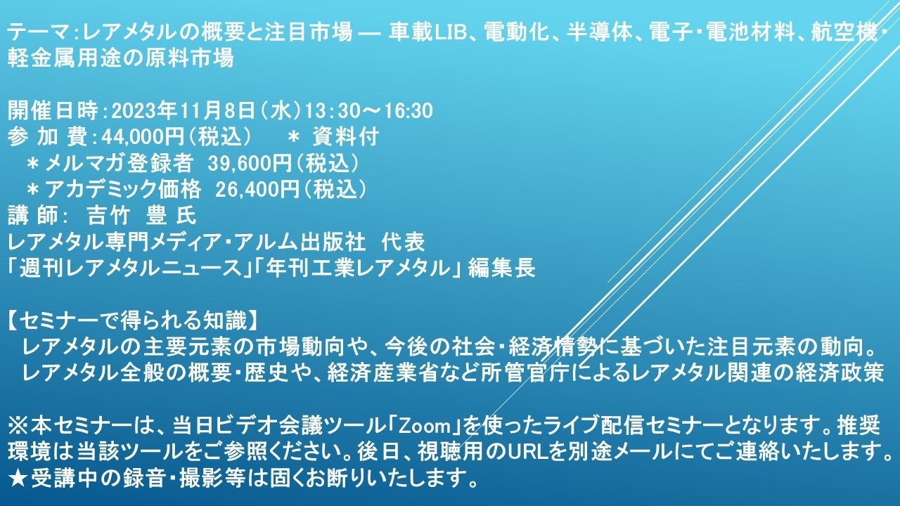 ※ 本セミナーは、当日ビデオ会議ツール「Zoom」を使ったライブ配信セミナーとなります。推奨環境は当該ツールをご参照ください。後日、視聴用のURLを別途メールにてご連絡いたします。
