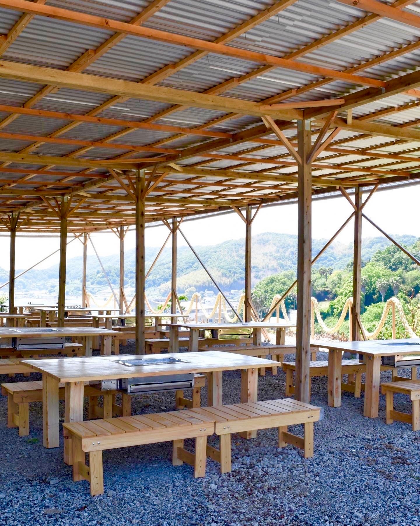 本施設は建築や解体から出る廃材や瓦、余剰の資材を再利用して施設が造られています。例え ば、玄関口には建物解体で廃棄予定だった可動式のゲートを再利用しており、そのほかにも解 体から出る”天然石”を利用したスロープや壁、余剰の建築資材を活用したBBQ施設など、“人と 自然の循環”がテーマである施設だからこその配慮です。資源の有効活用と再生を通して人と環 境を育み、日本の豊かな未来作りに貢献します。