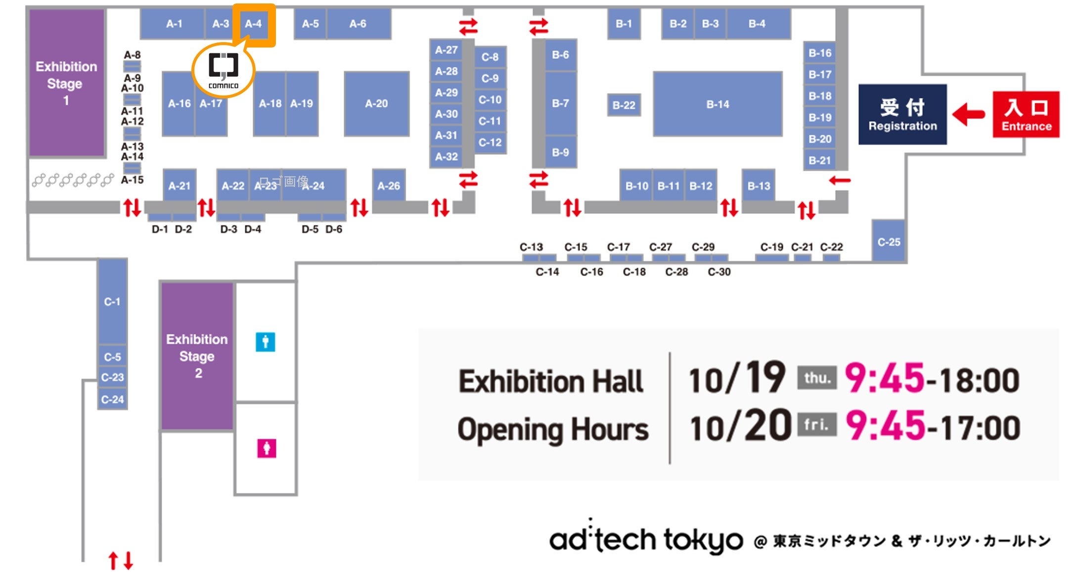 場所は東京ミッドタウンホール(B1F)のブース「A-4」です。詳細は、展示会場マップをご参照ください。