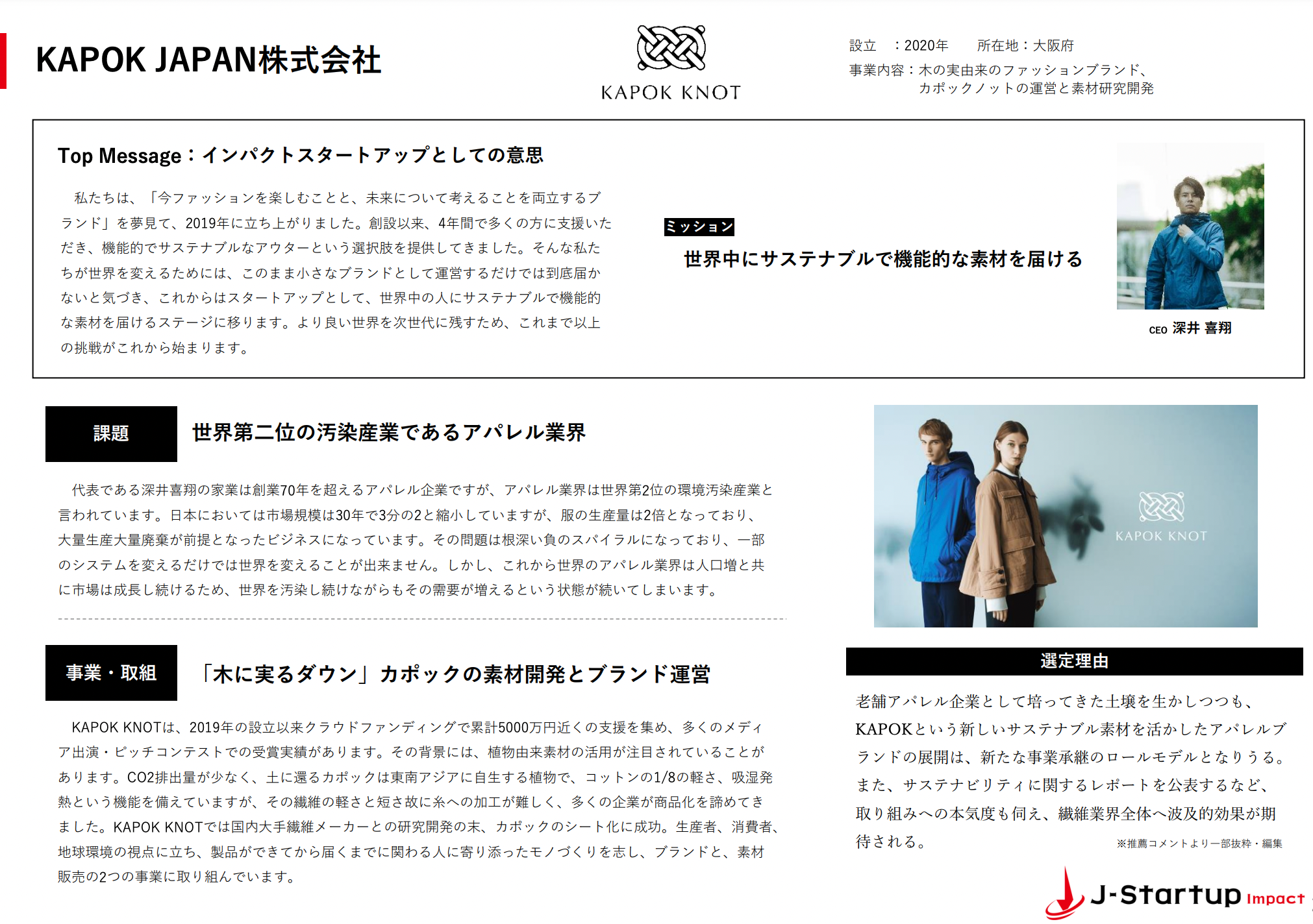 ◆KAPOK JAPANの「J-Startup Impact」選定理由