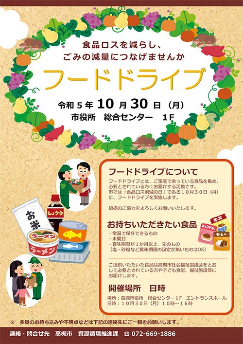 フードドライブのイベント実施(食品提供のお願い)(高槻市ホームページ)
