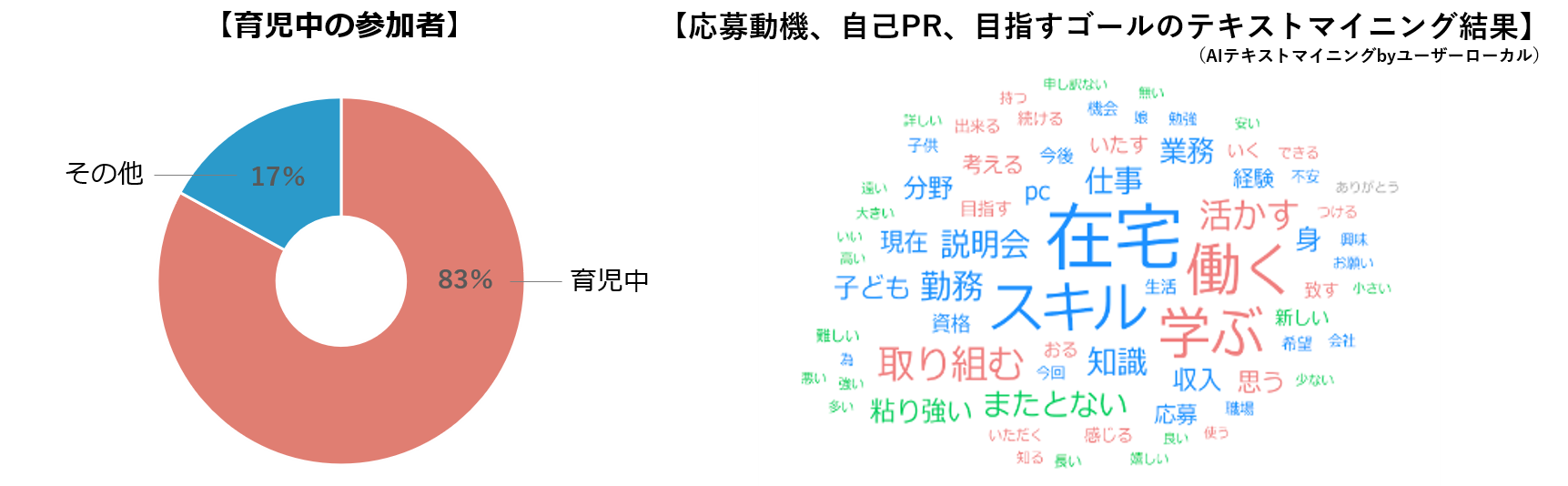 プロジェクト参加者の中で現在育児中の方は83%で、スキルを身に付けると共にライフスタイルに左右されない働き方の希望度も多く上がっています。