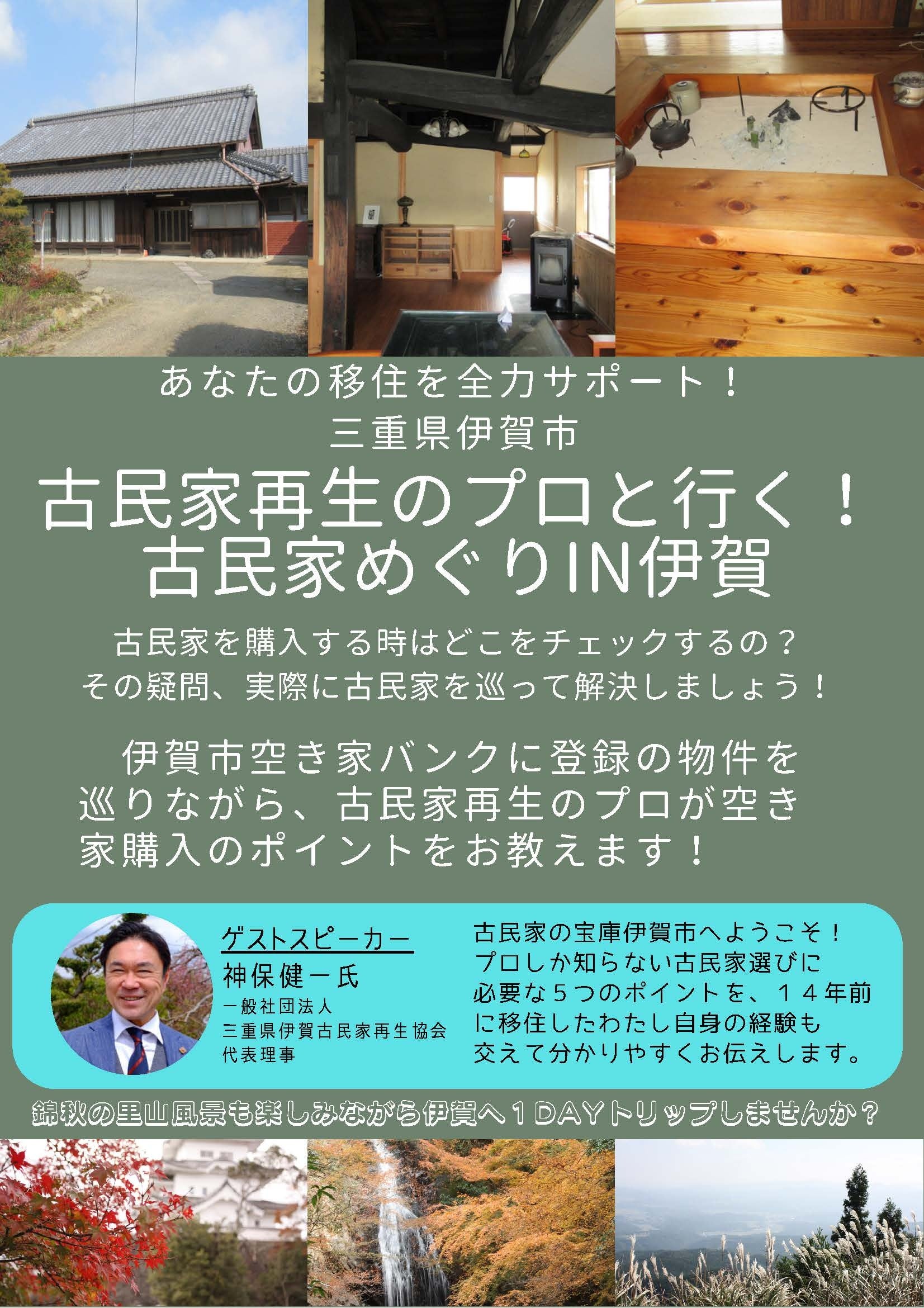 移住相談のなかでも住まいに関する相談が多く、古民家への関心も高いことから、11月19日(日)に伊賀市空き家バンクに登録の物件を巡りながら、古民家購入時のポイントを古民家再生のプロから学ぶ移住セミナーを開催します。