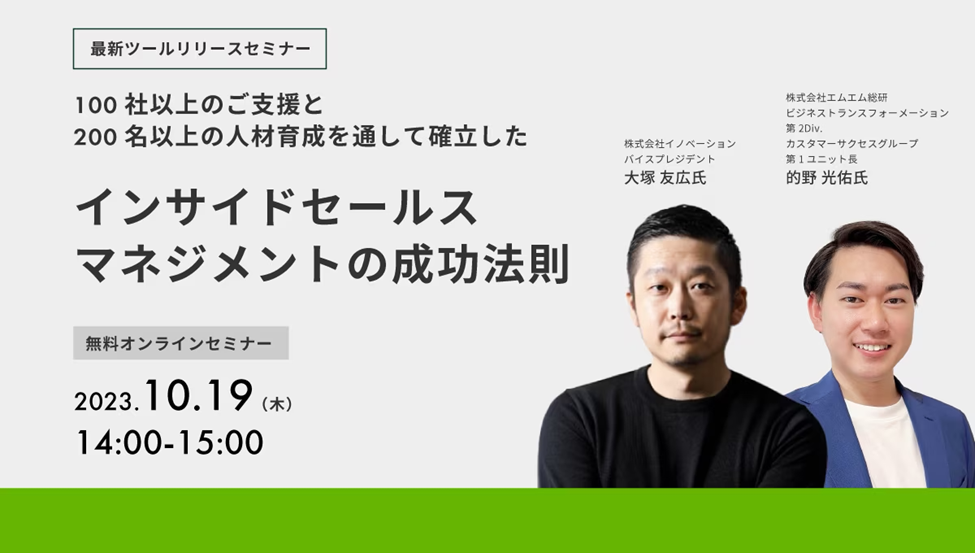 本ウェビナーでは、インサイドセールスに知見の深いエムエム総研とSales Techに知見の深いイノベーションがタッグを組み、インサイドマネジメントツール「Sales Lake」を開発した背景と、そこに潜む課題やその成功法則についてお伝えいたします。