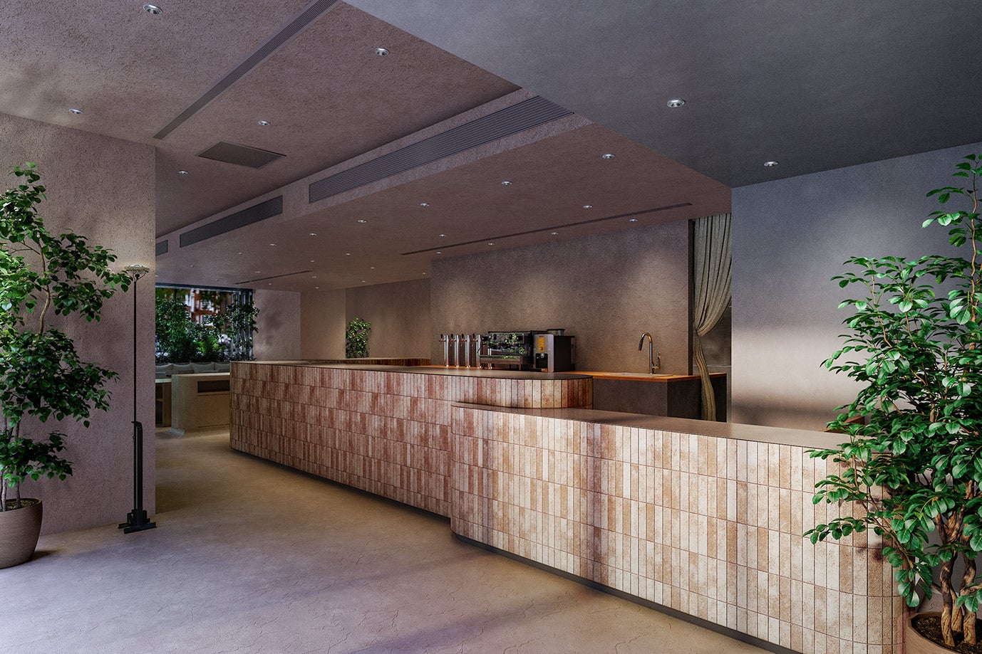 フォレストゲート内の中庭の緑とも調和する、人間の肌から着想を得て自然素材でワントーンに仕上げたインテリアと、和洋折衷の独特な世界観が、懐かしくも新鮮さを感じる原始的な雰囲気を生み出します。研究所で企画・開発したメニューや商品を試供していく喫茶室として、様々なイベントやPOP UPを開催します。