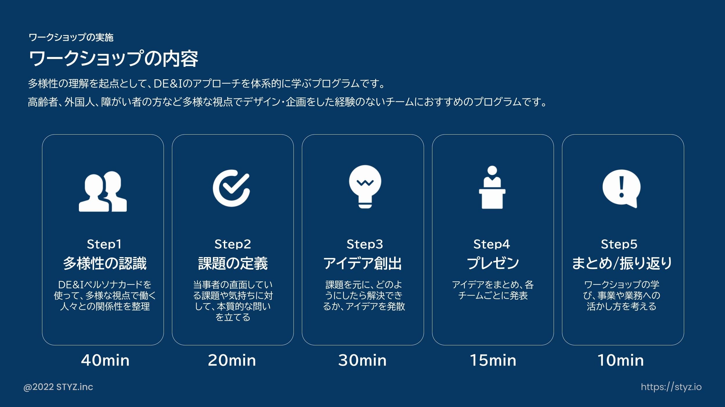 この度、業界をリードするデザイナー、エンジニアとソーシャルセクターのつながりから、新たにDE&Iを推進する企業の支援を後押しするため、DE&Iの理解・組織浸透を体験できる、『DE&Iワークショップ』の提供を開始しました。